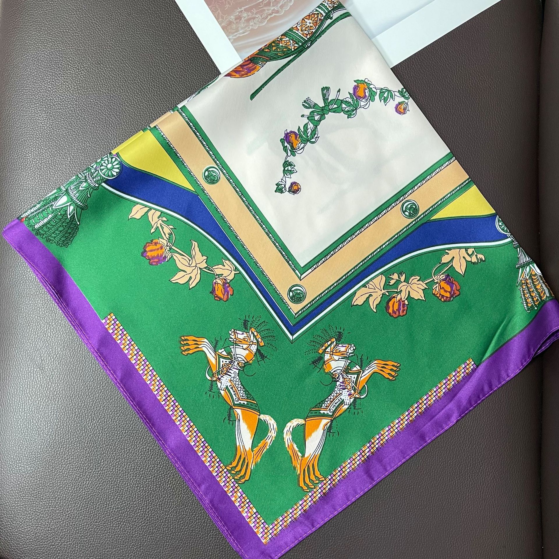 Gaohe 실크 스카프 봄과 가을 새로운 twill 인쇄 스카프 영국 스타일 격자 무늬 70cm 작은 사각형 스카프 여성용 스카프스토어 가기