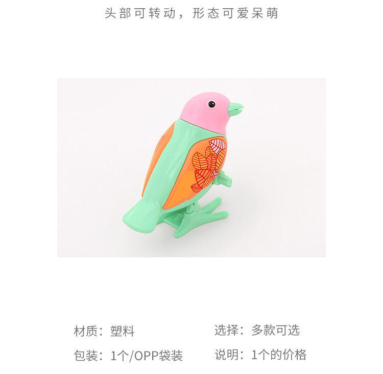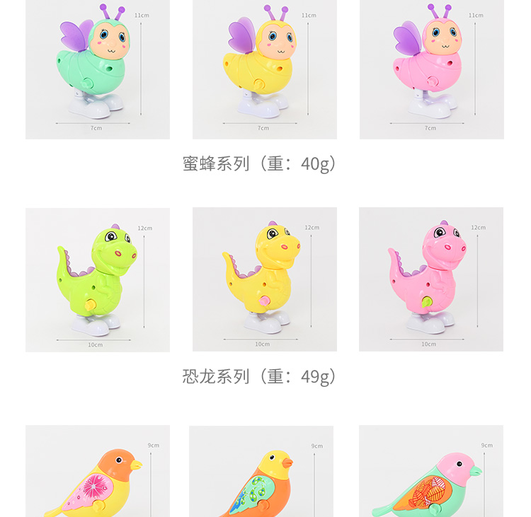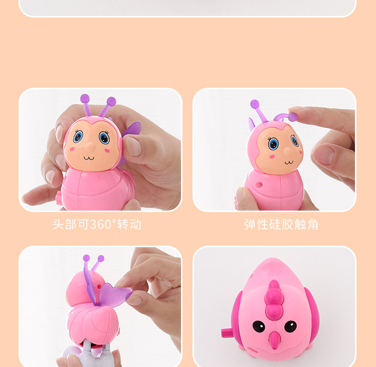转动发条,小动物就会往前奔跑,吸引宝宝注意力。宝宝学习爬行的好帮手!造型很逗,颜色鲜艳!!!趣味的卡通动作更能吸引孩子的眼球,非常神奇哦。可爱的卡通造型让宝宝自己的好奇心带动他(她)自己的心灵发育。