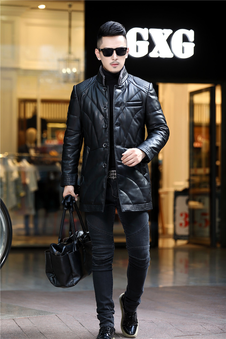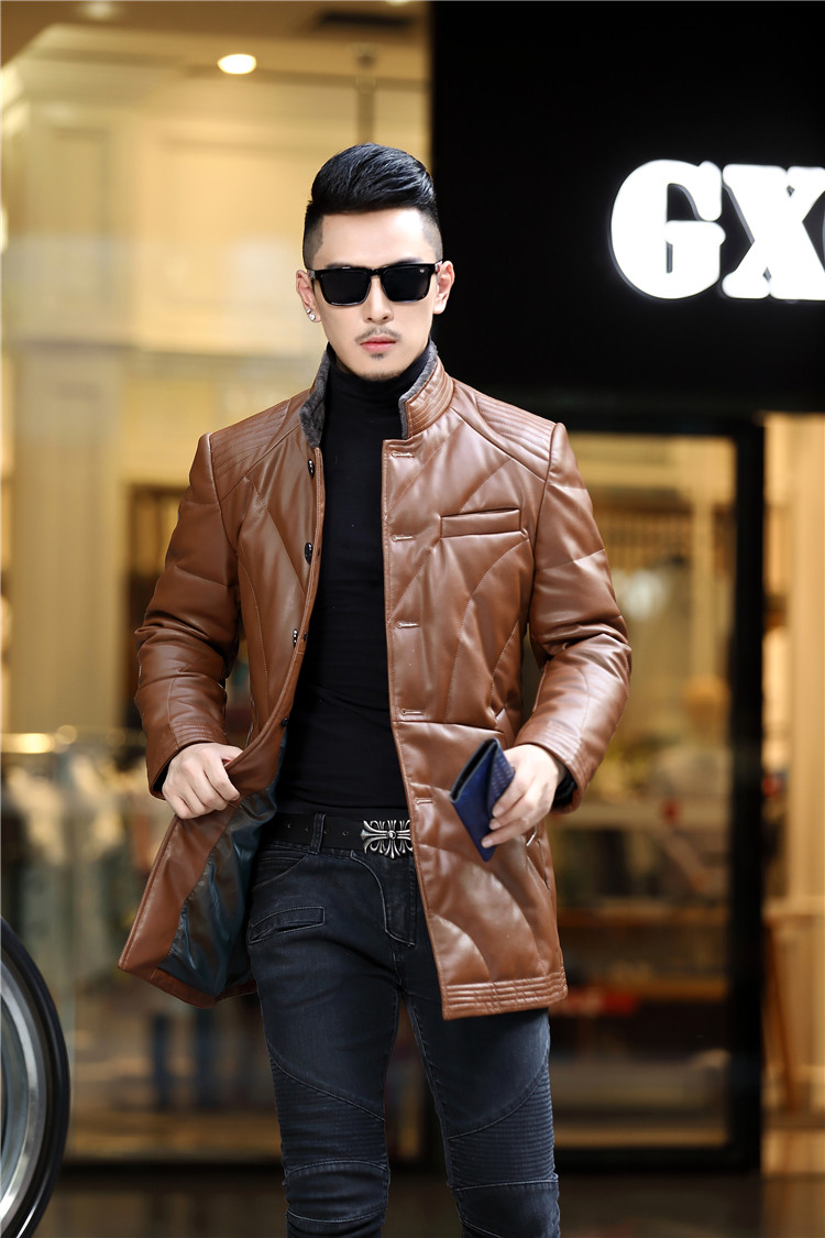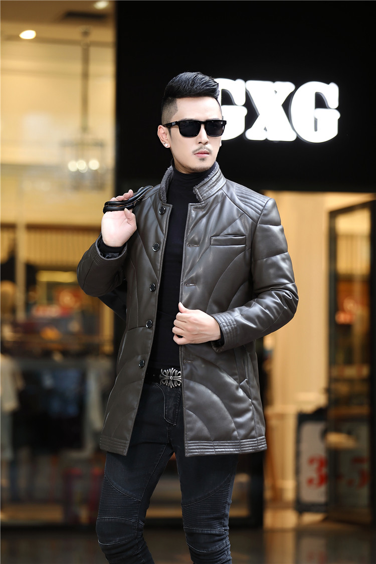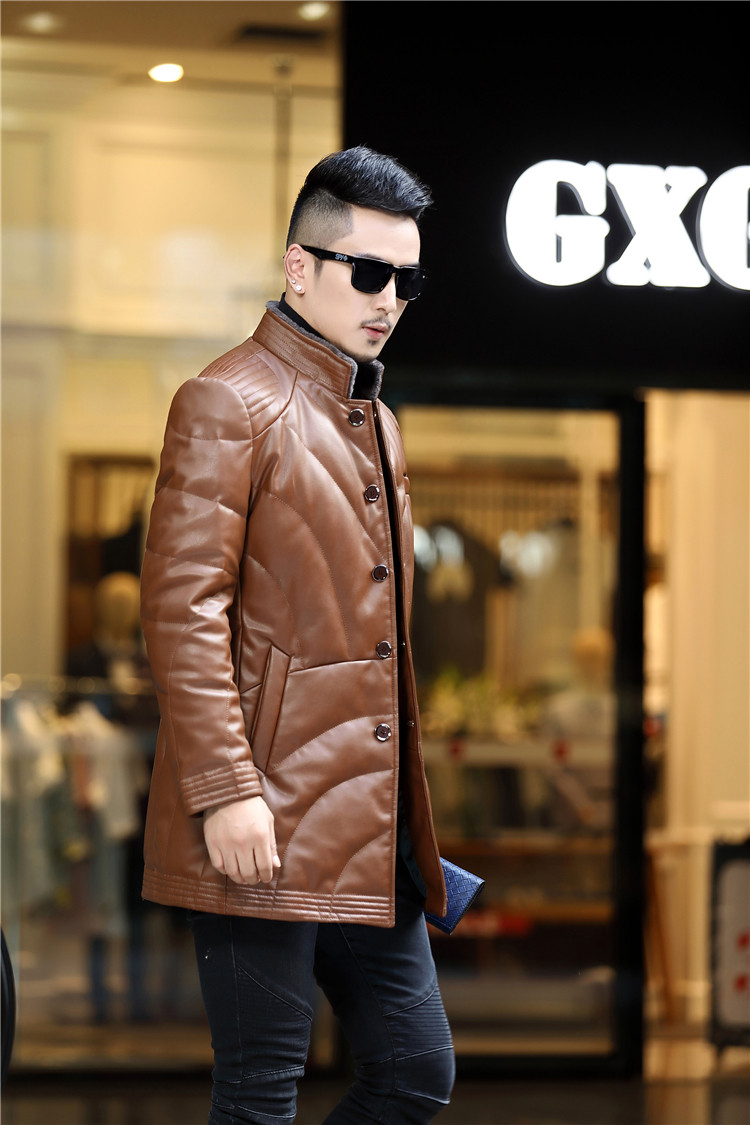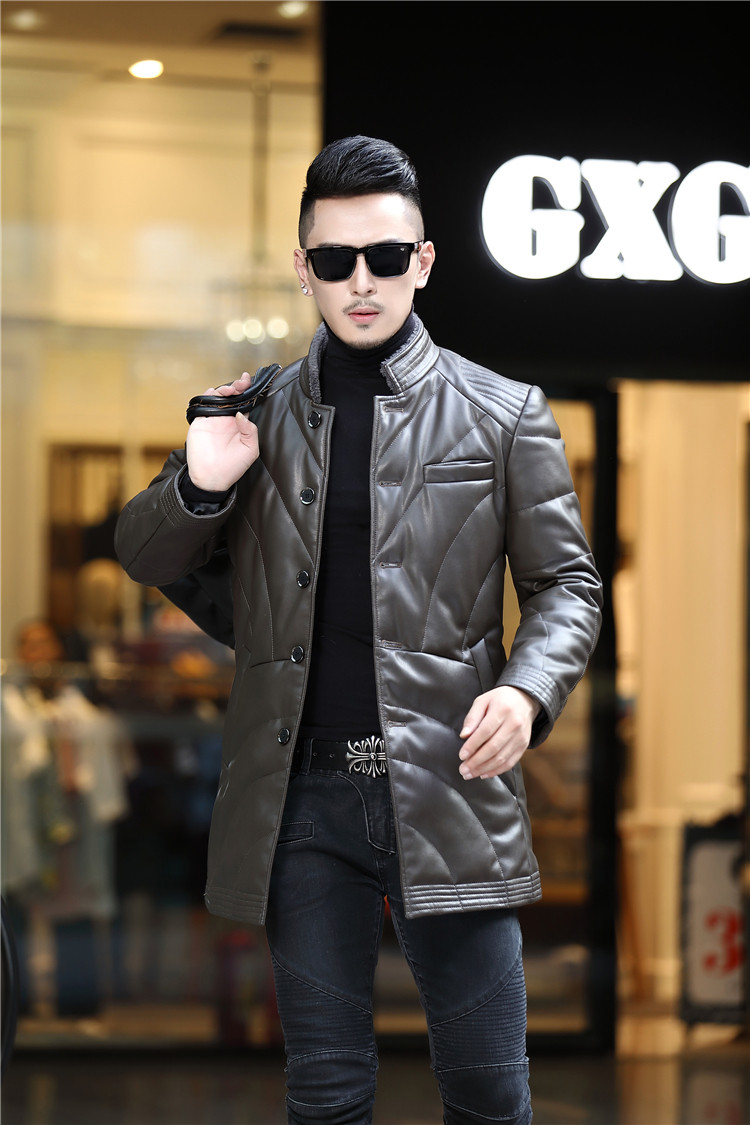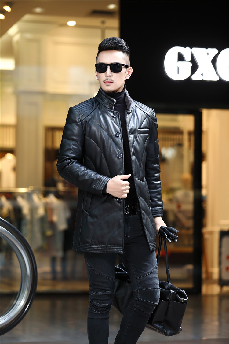 Haining 다운 재킷 가죽 남성용 중간 길이 라펠 모피 남성용 양가죽 스타일 재킷 코트 특별 가격
