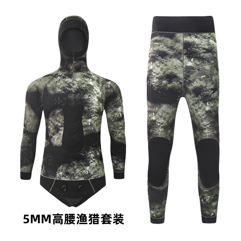 잠수복 고무 1.5 3 5 7MM 위장 남성과 여성 분할 후드 두꺼운 따뜻한 낚시 낚시 낚시 옷스토어 가기