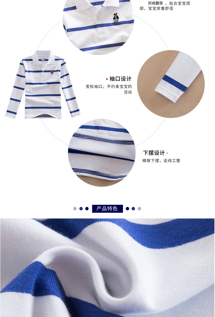 2025 봄과 가을 어린이 티셔츠 크고 작은 아동면 긴소매 줄무늬 폴로 셔츠 어린이 대외 무역 단일 도매스토어 가기