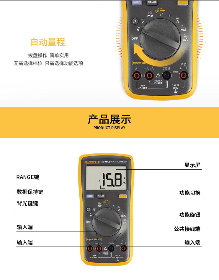 FLUKE Fluke 15B MAX-KIT 업그레이드 된 멀티 미터 고정밀 전기 17BMAX-01-18B스토어 가기