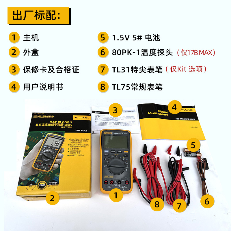 FLUKE Fluke 15B MAX-KIT 업그레이드 된 멀티 미터 고정밀 전기 17BMAX-01-18B