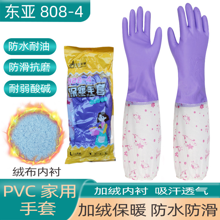 동아시아 808-4 슬리브 따뜻한 안감 벨벳 가정용 장갑 라텍스 패딩 방수 내유성 식기 세척 장갑