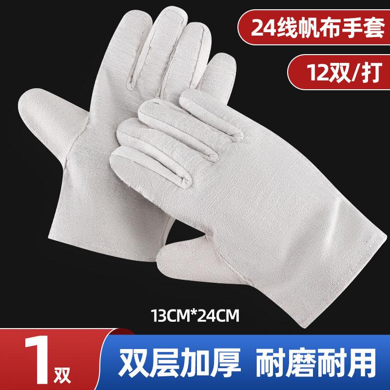산업 안전 캔버스 내마모성 두꺼운 보호용 용접 캔버스 장갑 노동 보호 도매 캔버스 장갑 노동 보호 용품스토어 가기