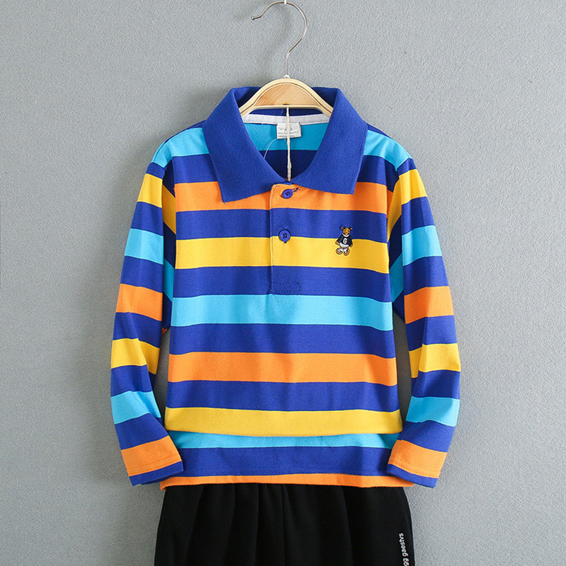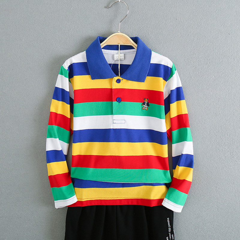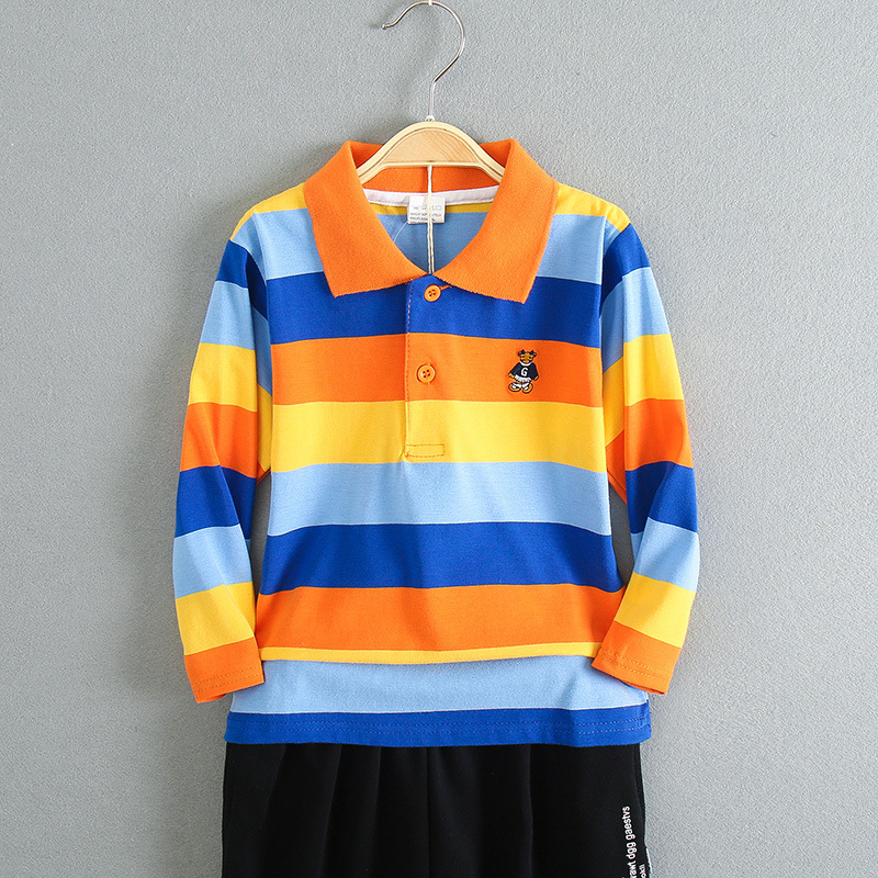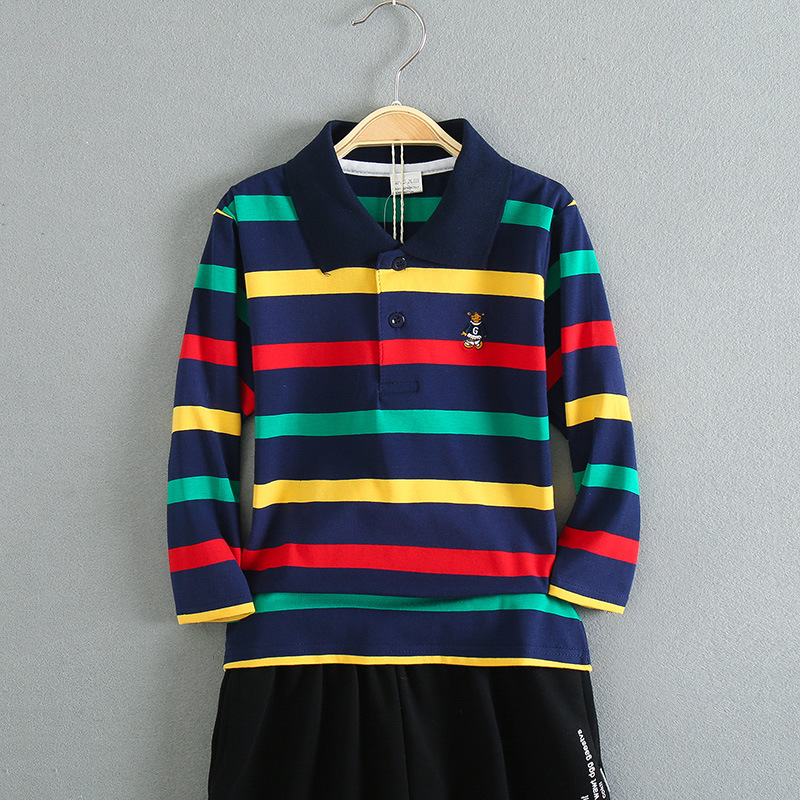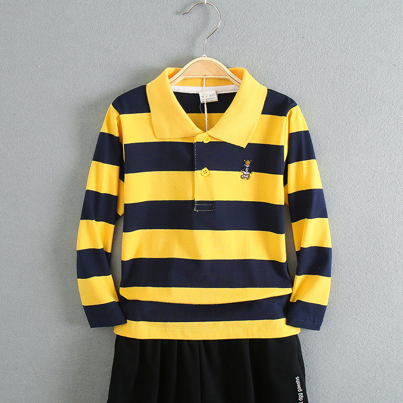 발라 발라 봄 가을 착용 한국 아동복 남아 긴팔 티셔츠 중소 남아 스트라이프 라펠 폴로 셔츠