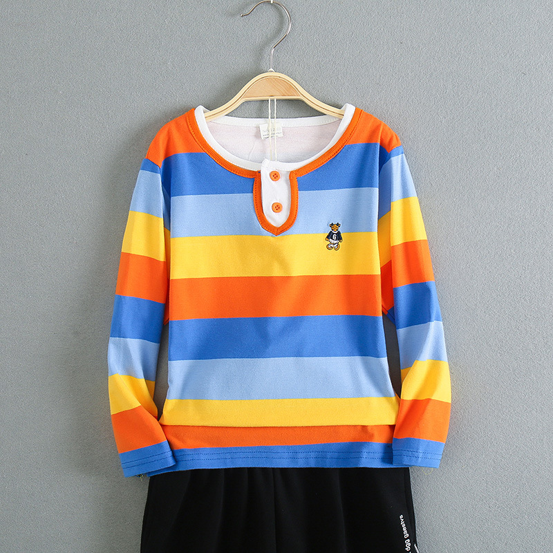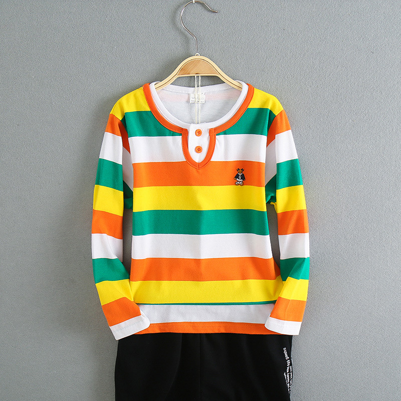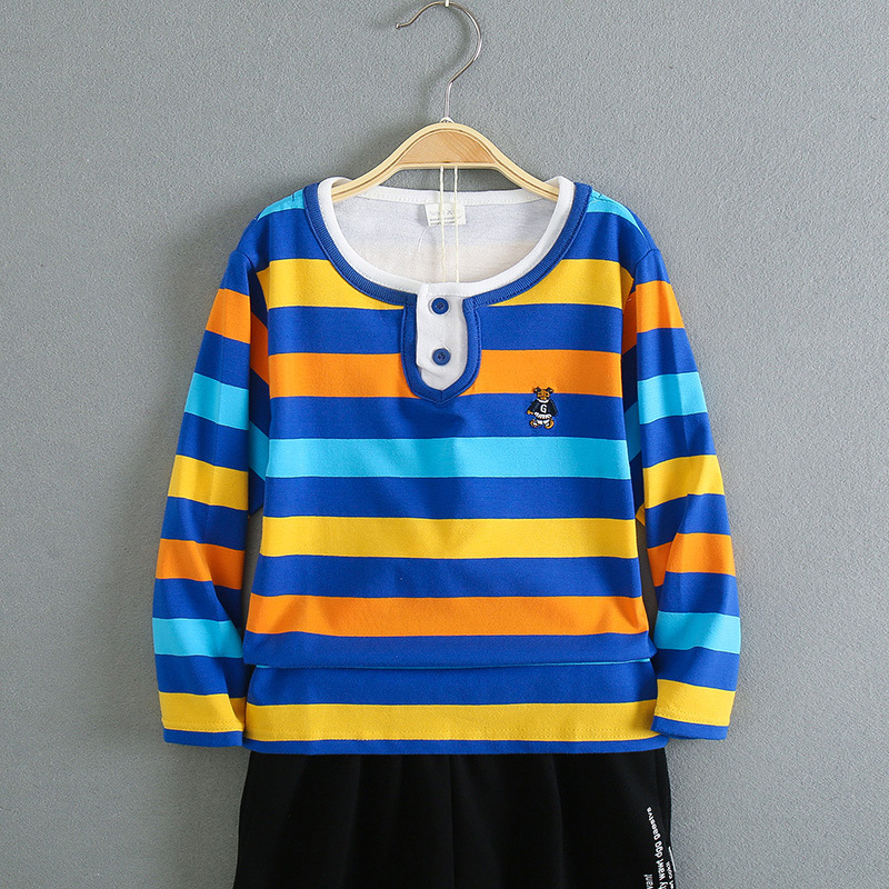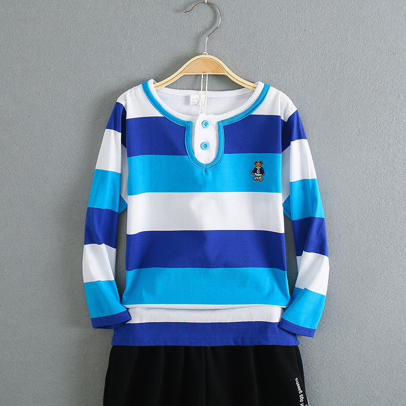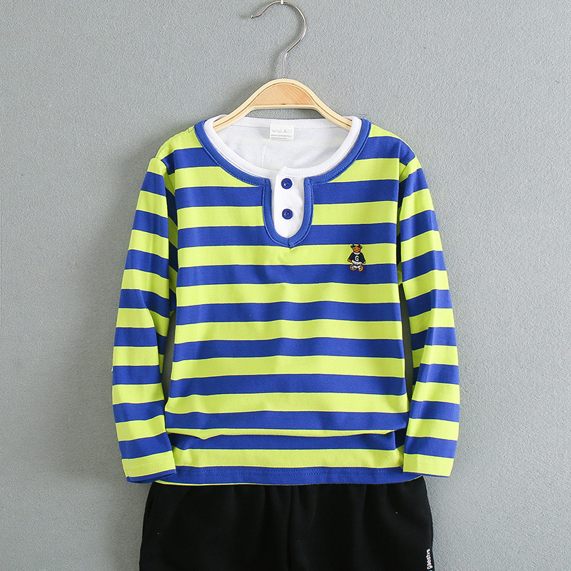 발라 발라 봄 가을 착용 한국 아동복 남아 긴팔 티셔츠 중소 남아 스트라이프 라펠 폴로 셔츠