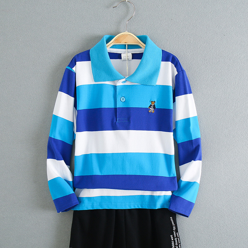 발라 발라 봄 가을 착용 한국 아동복 남아 긴팔 티셔츠 중소 남아 스트라이프 라펠 폴로 셔츠스토어 가기