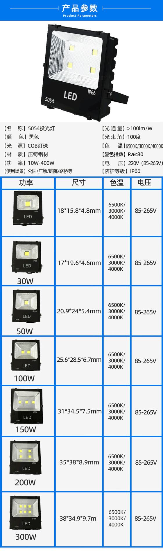 LED 블랙 다이아몬드 투광등 5054 실외 방수 IP66 투광등 스포트라이트 50W100W150W200W300W