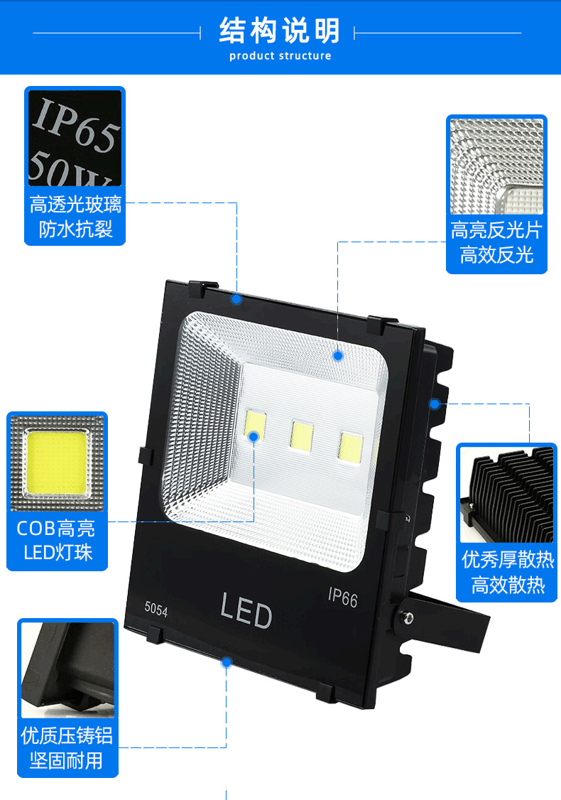 LED 블랙 다이아몬드 투광등 5054 실외 방수 IP66 투광등 스포트라이트 50W100W150W200W300W스토어 가기