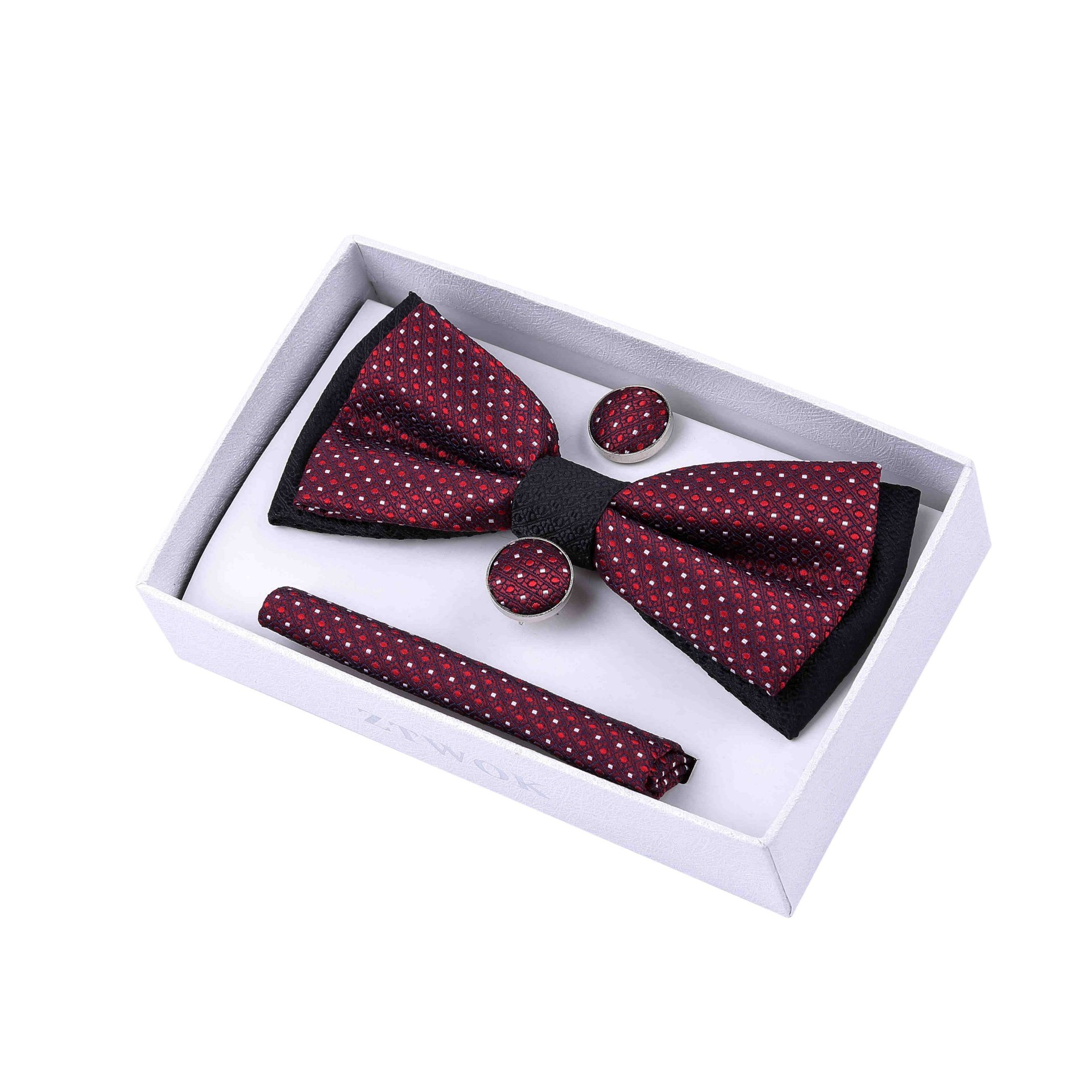 Shengzhou 제조 업체 공급 남성 공식 세트 영국 스타일 박스 스퀘어 스카프 커프스 단추 나비 넥타이 선물 상자 세트