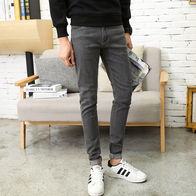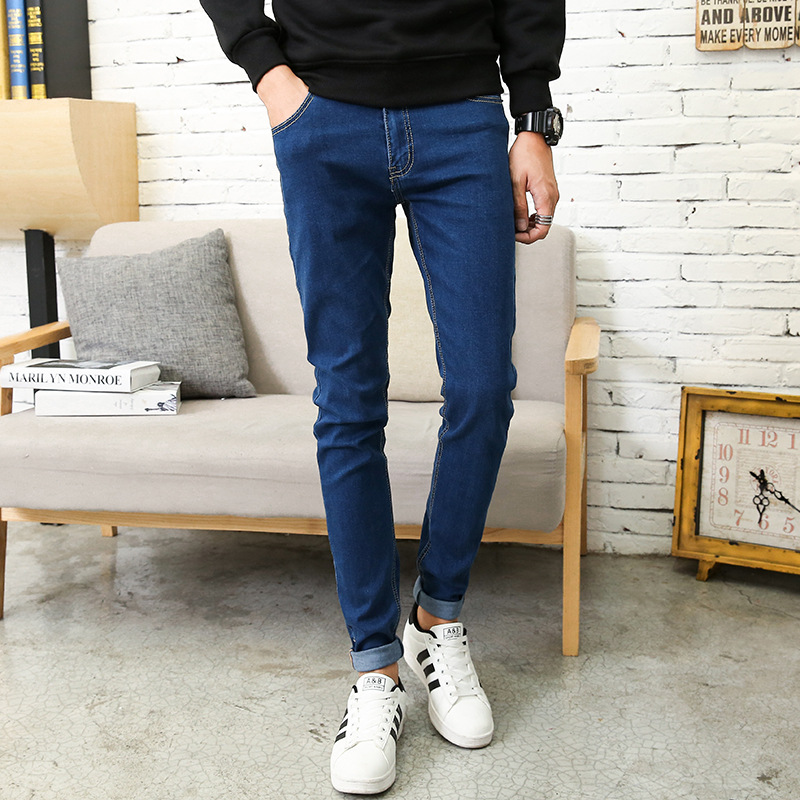 엄선된 봄 가을 신상 남성용 스트레치 슬림핏 청바지 한국 스타일 청소년용 긴바지 820