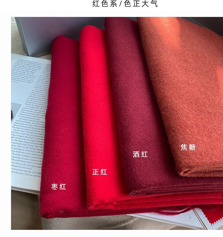 여성을위한 겨울 단색 두꺼운 모조 캐시미어 스카프 연례 파티 빨간색 선물 로고 수 놓은 목도리 스카프 공장 도매스토어 가기