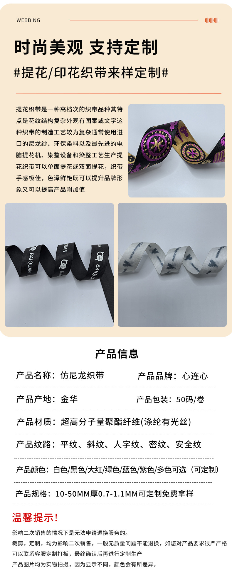• 모조 나일론 단일 단어 2.5cm