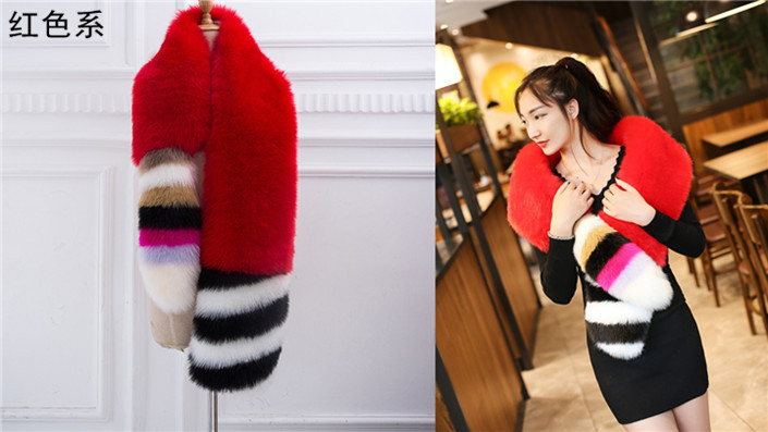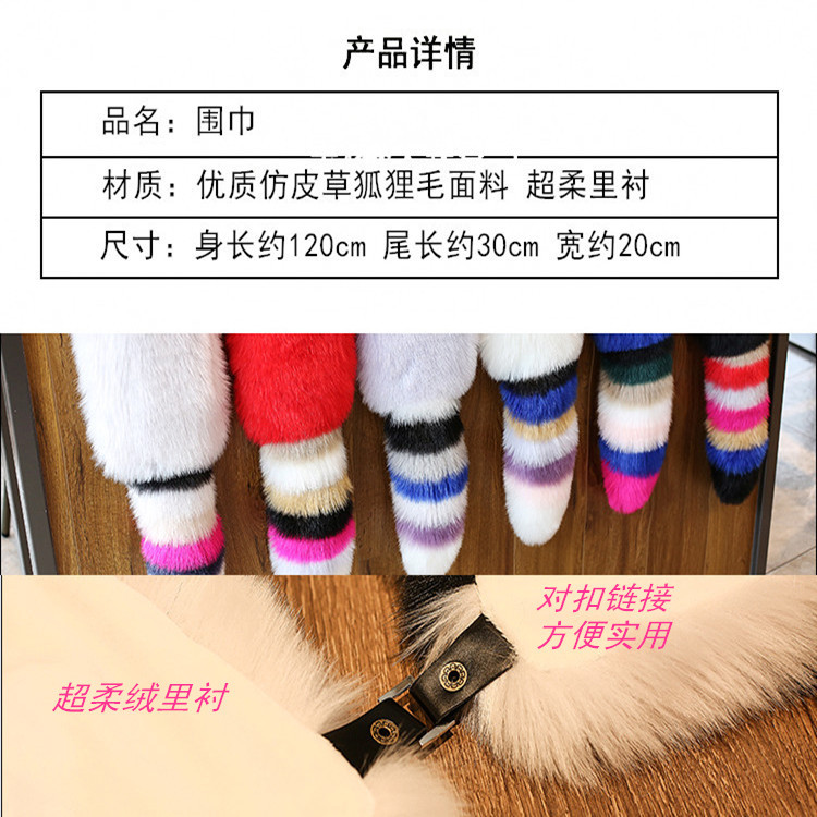 新款仿皮草狐狸毛个性拼色围巾披肩狐狸毛领子秋冬女士围巾披肩潮