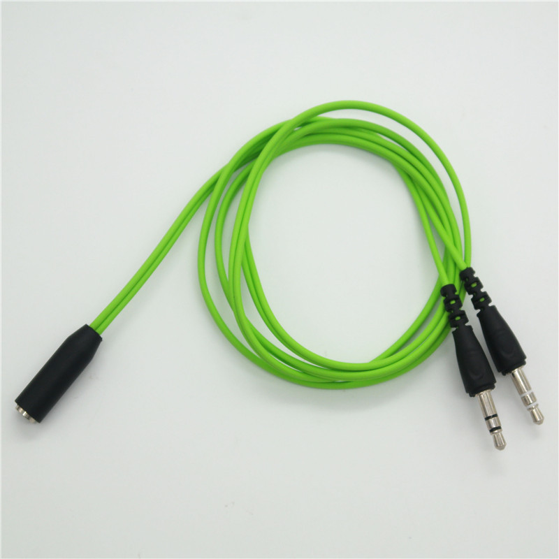 【使用方法】:将双头端接到台式机或笔记本上,按尾巴标识插入(一个麦克风插头、一个耳机插头),再把4节的手机耳机插入单头的母座内即可。
