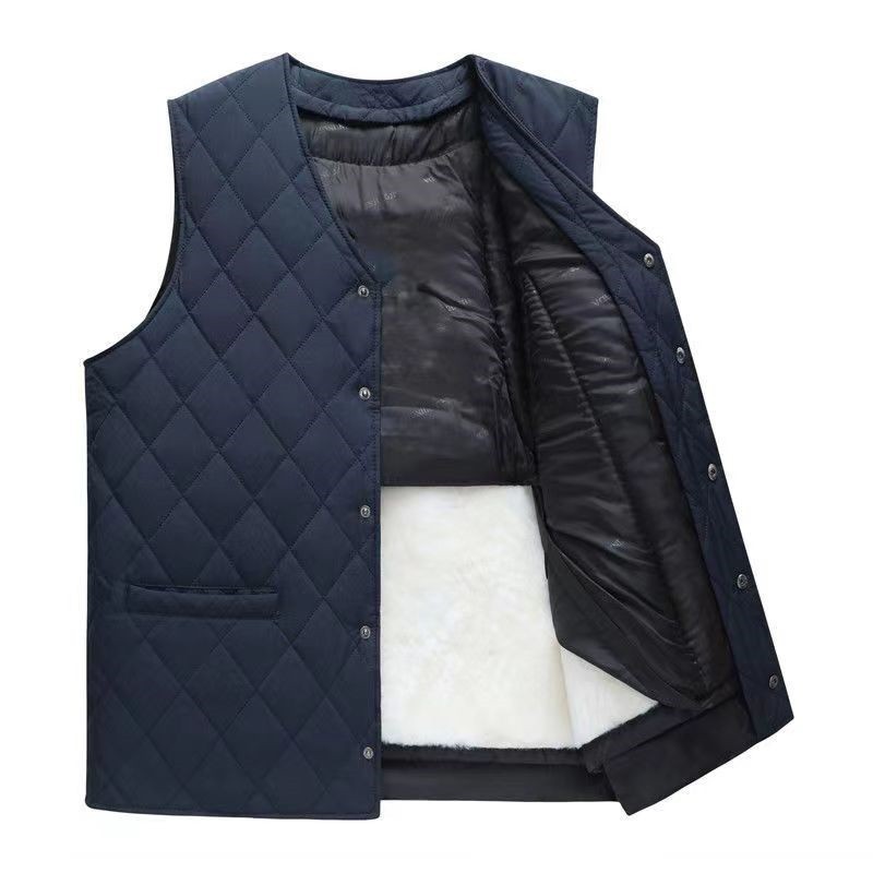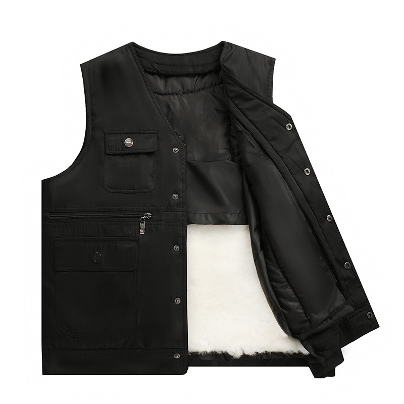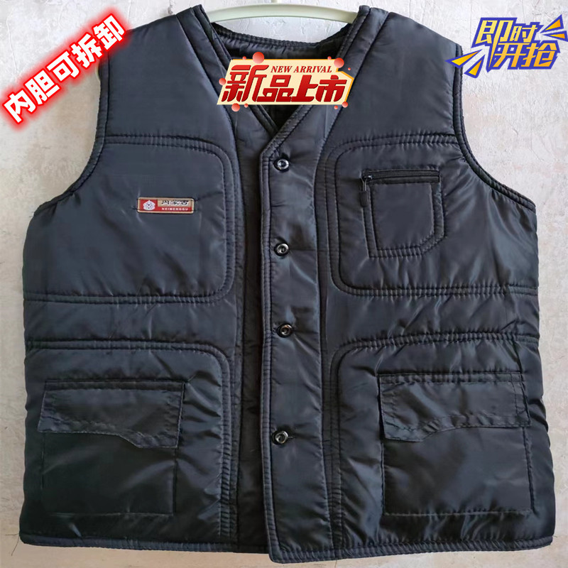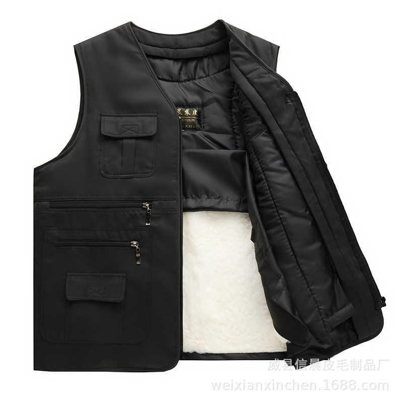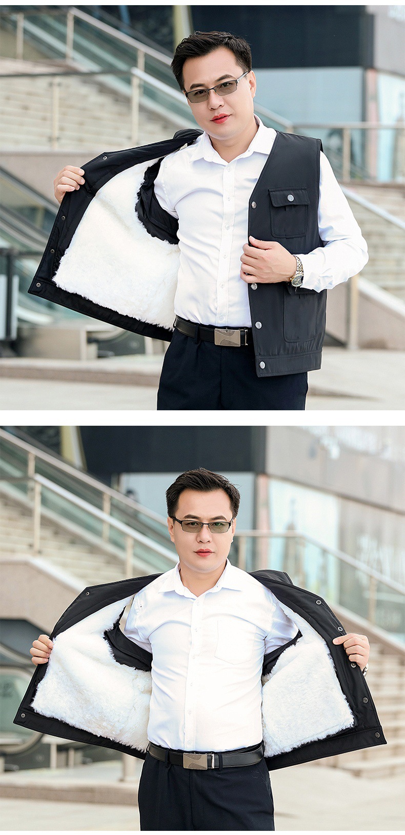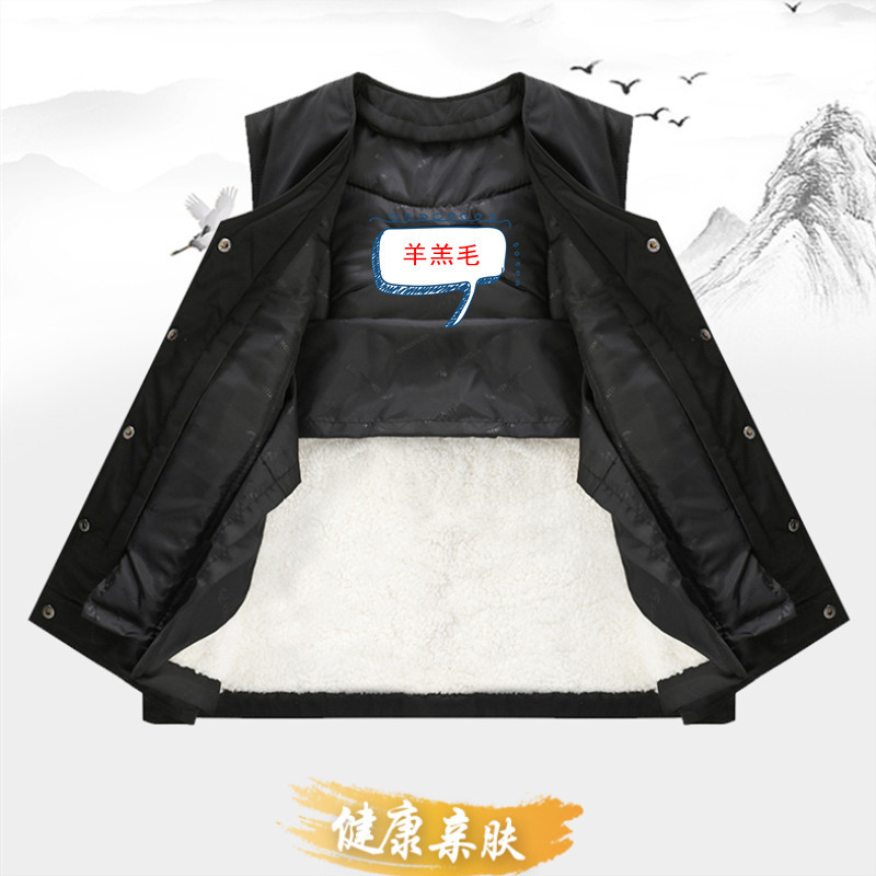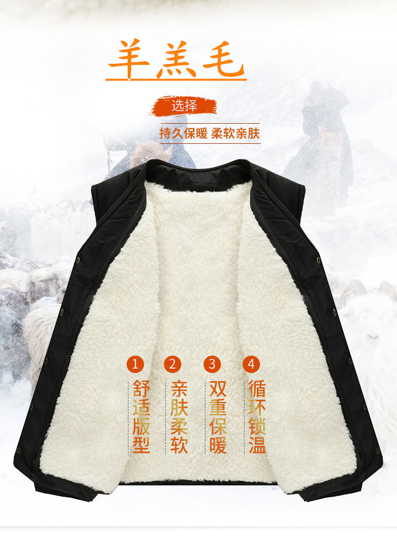 양모 조끼 제조업체 도매 시장 가죽과 모피 일체형 남성 중년 및 노년층 겨울 보온 조끼 양가죽 면 재킷스토어 가기