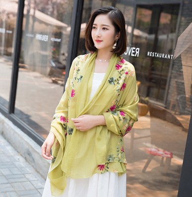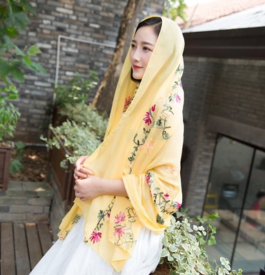 수 놓은 민족 스타일 면화와 린넨 스카프 여성용 가을과 겨울 목도리 이중 사용 봄과 가을 문학 여름 실크 스카프 여행 긴 배치