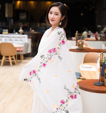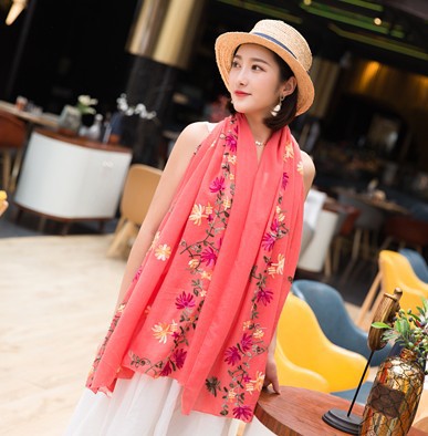 수 놓은 민족 스타일 면화와 린넨 스카프 여성용 가을과 겨울 목도리 이중 사용 봄과 가을 문학 여름 실크 스카프 여행 긴 배치스토어 가기