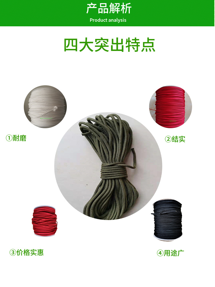 폴리에스터 그물 바닥 강철 특수 로프 폐쇄 로프 내장 로프 낚시 그물 상단 로프 폴리 프로필렌 부동 물 8 가닥 완전히 짠 핸드 로프