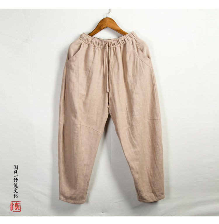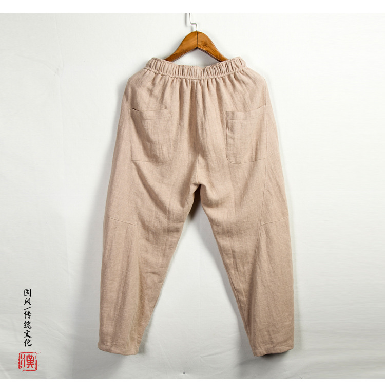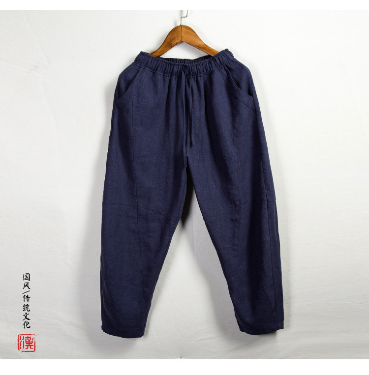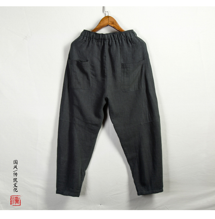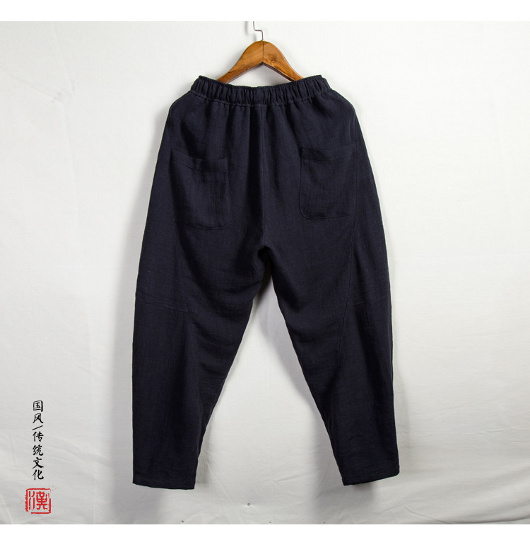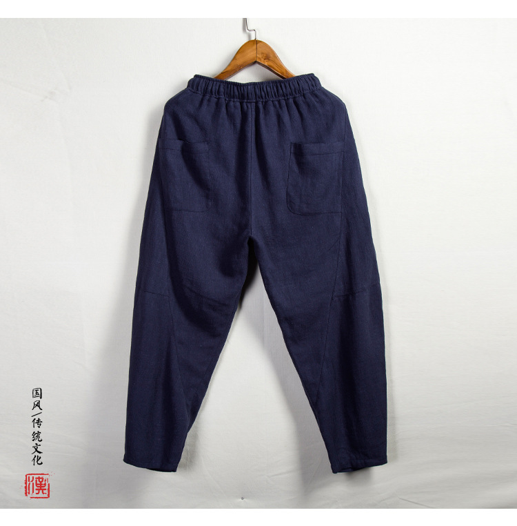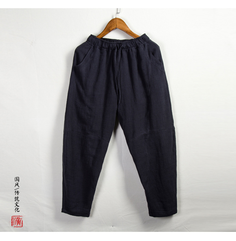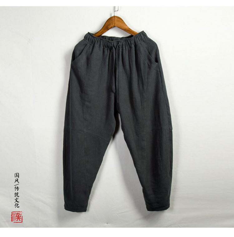 가을 겨울 신상 중국풍 남성 긴바지, 모시 남성 캐주얼 바지, 루즈핏 와이드 팬츠스토어 가기