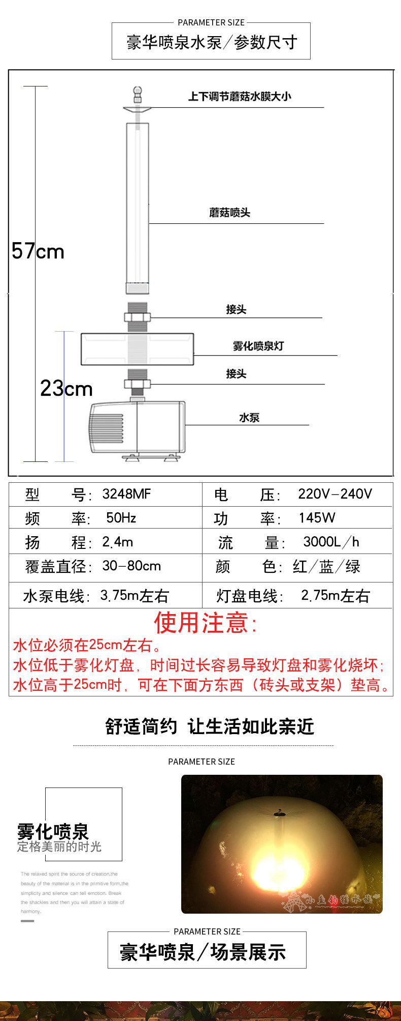 • 颜色分类: 3248MF喷30-120cm左右 单独雾化七彩变色灯盘