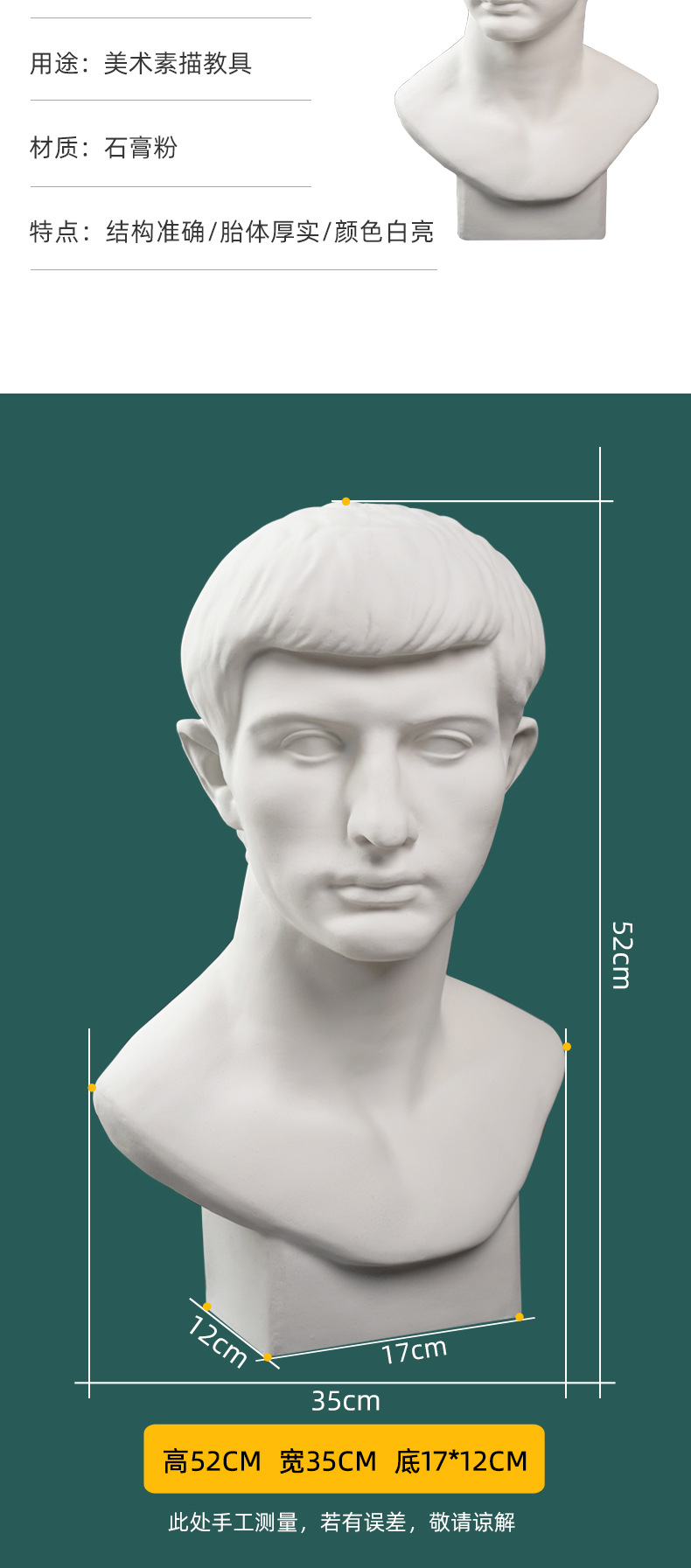 • 52cm罗马青年石膏头像