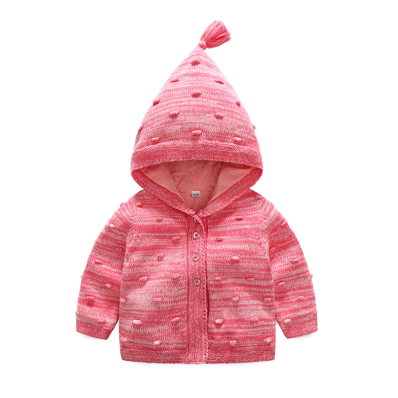 2025년 아동복 가을 신상품 0-2세 여아용 핑크색 이중 니트 스웨터 큰 모자 코트스토어 가기