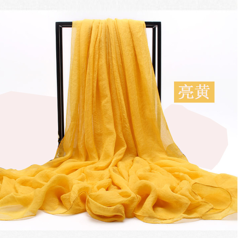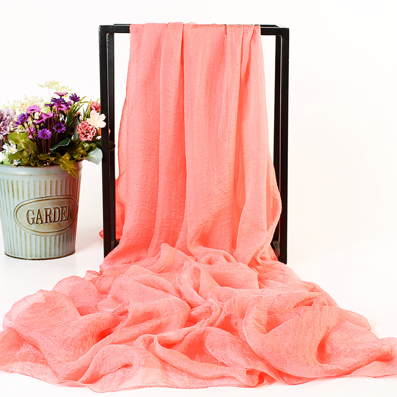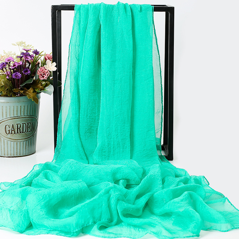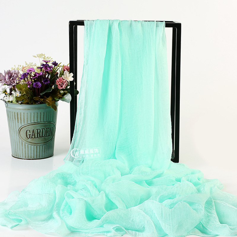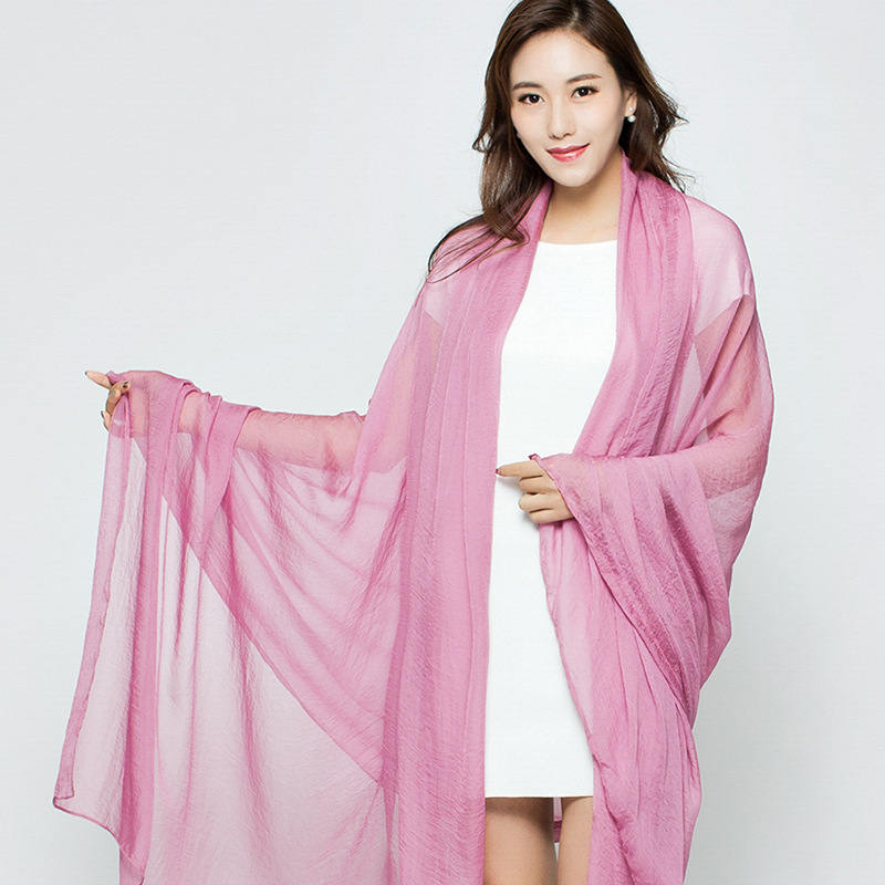 여름 단색 실크 초대형 스카프 해변 해변 수건 긴 봄과 여름 여성용 쉬폰 스카프 주름 숄