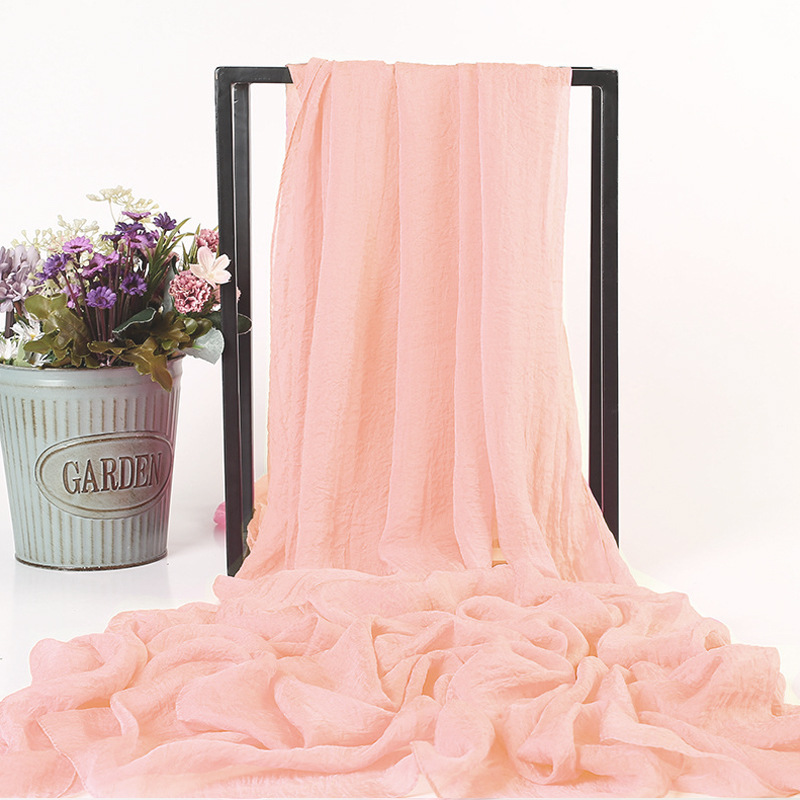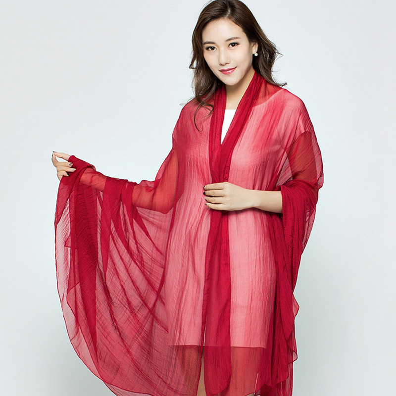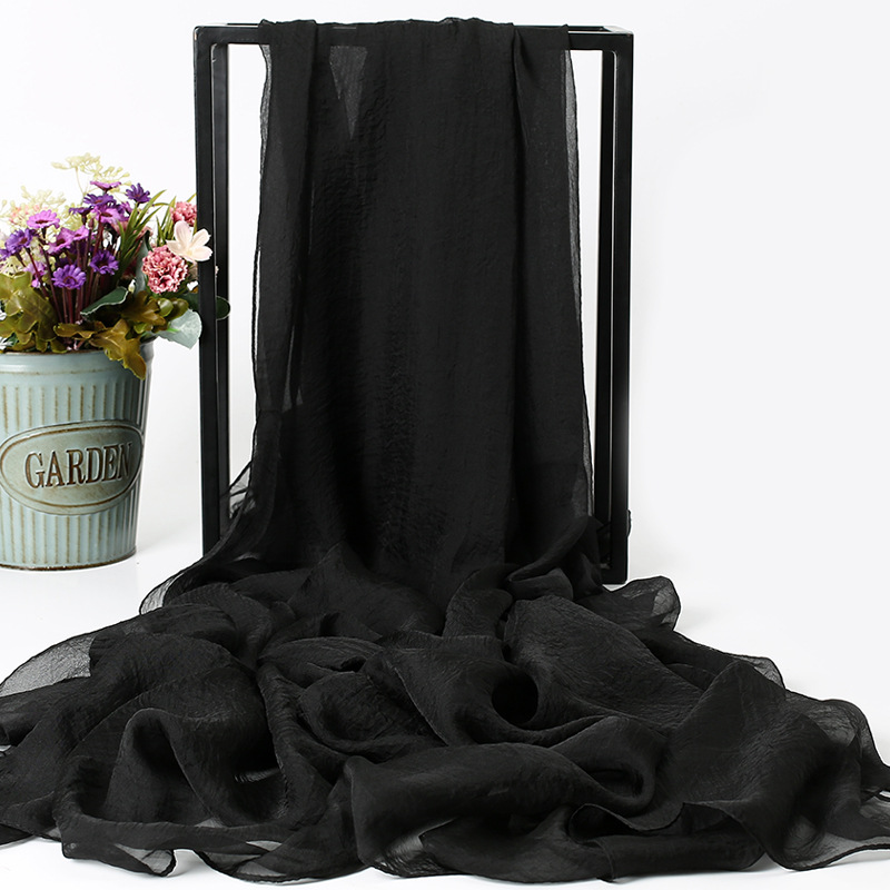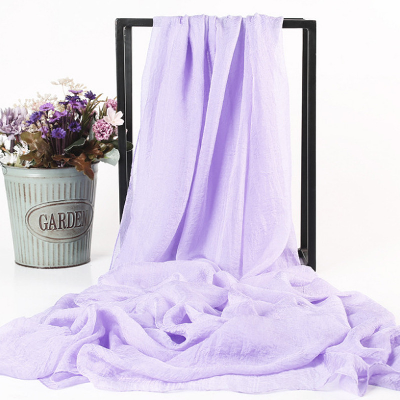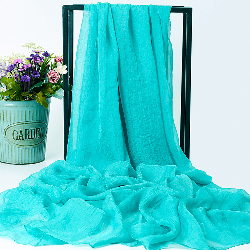여름 단색 실크 초대형 스카프 해변 해변 수건 긴 봄과 여름 여성용 쉬폰 스카프 주름 숄
