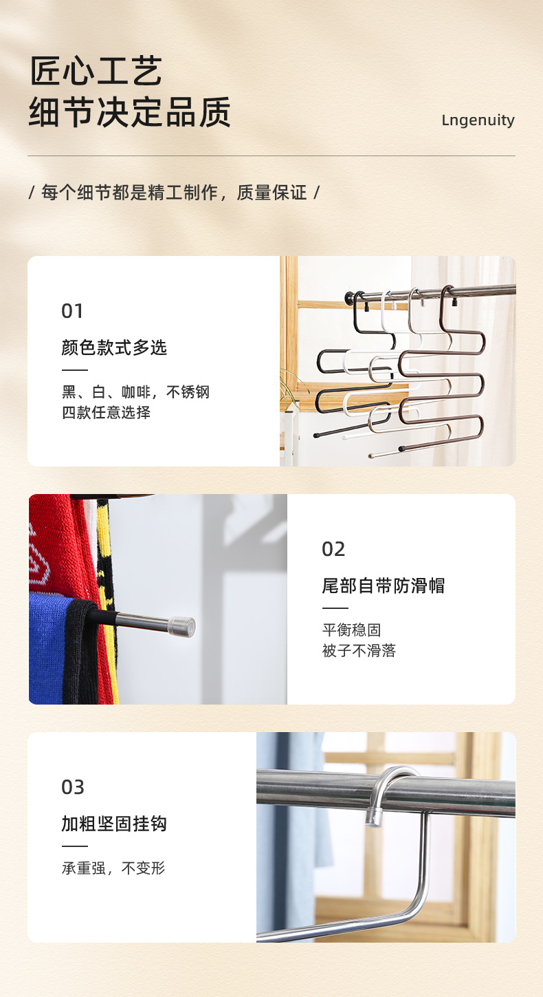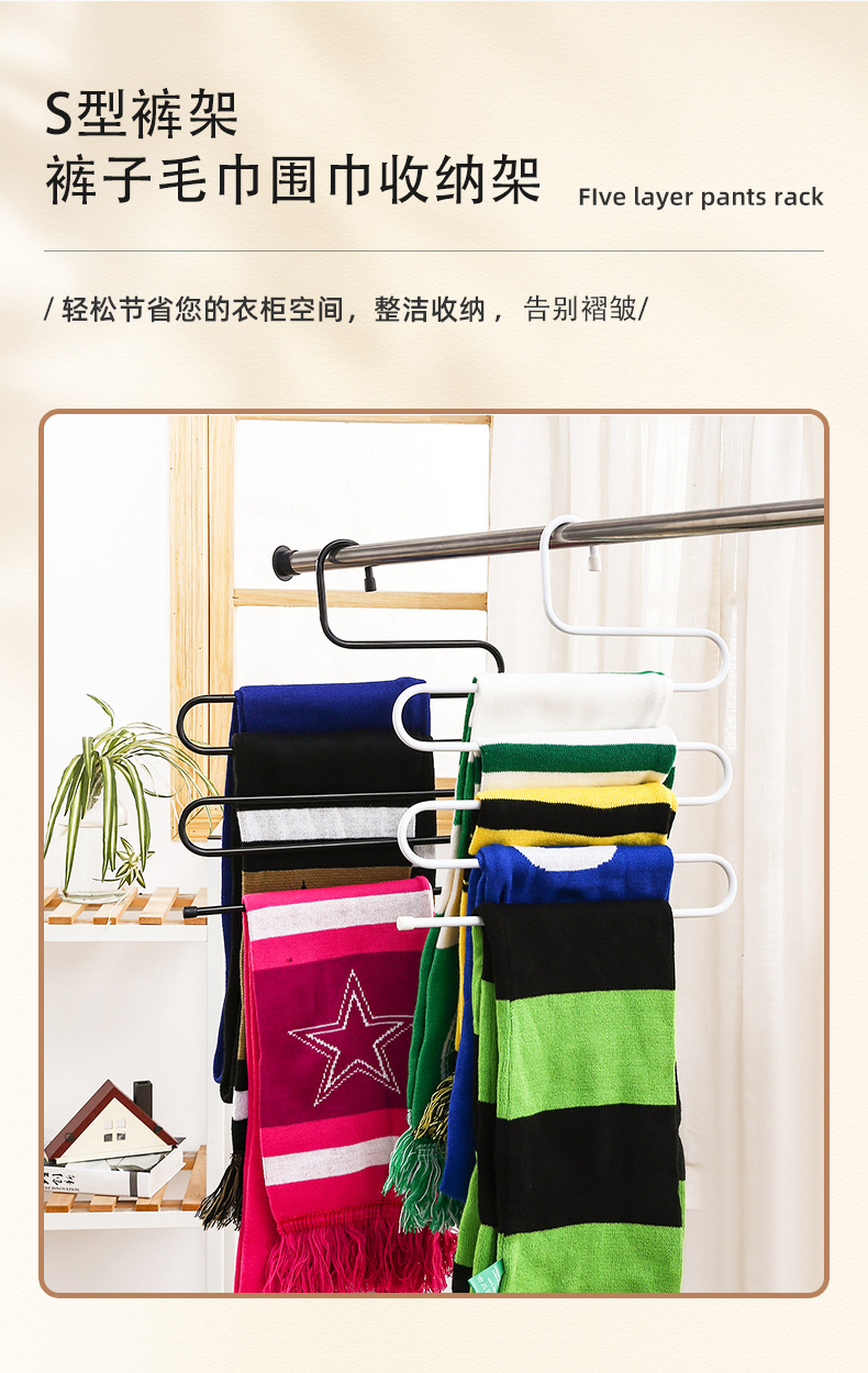 미끄럼 방지 스테인리스 다층 바지걸이 수건 S자형 바지 옷걸이 스카프 보관 정리 옷걸이 가정용스토어 가기