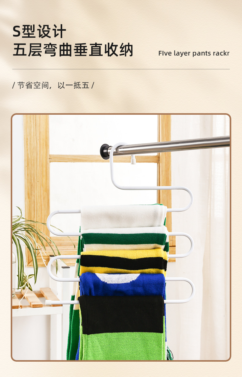 미끄럼 방지 스테인리스 다층 바지걸이 수건 S자형 바지 옷걸이 스카프 보관 정리 옷걸이 가정용