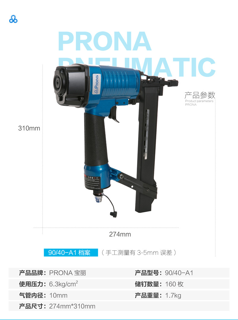 폴라로이드 prona 공압 공압 공구 공압 코드 네일 건 90/40-A1 공압 U 형 네일 건 공장 콘센트