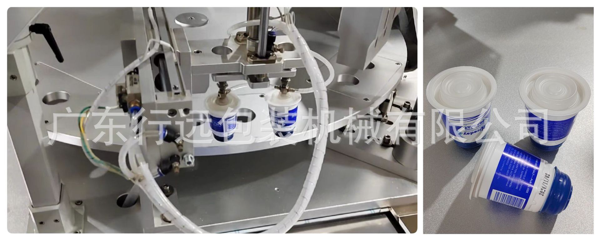 요구르트 컵 그릇 알루미늄 호일 씰링 기계 화장품 액체 충전 씰링 기계 완전 자동 조립 라인 디스크 씰링 기계