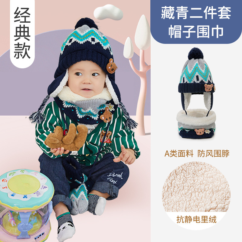 레몬 아기 어린이 가을과 겨울 모자 장갑 스카프 아기 겨울 기모 눈송이 모자 소년 소녀 도매스토어 가기