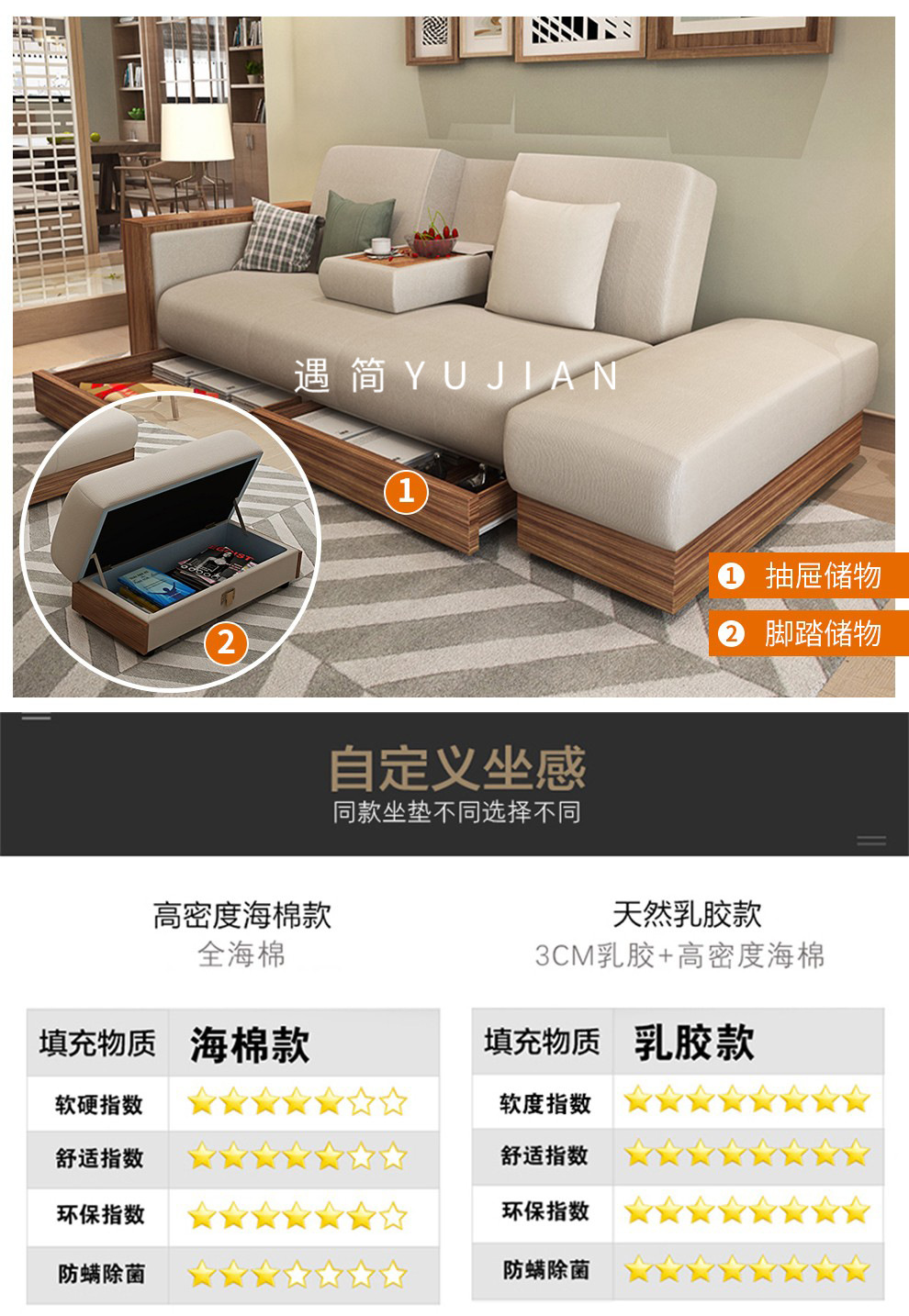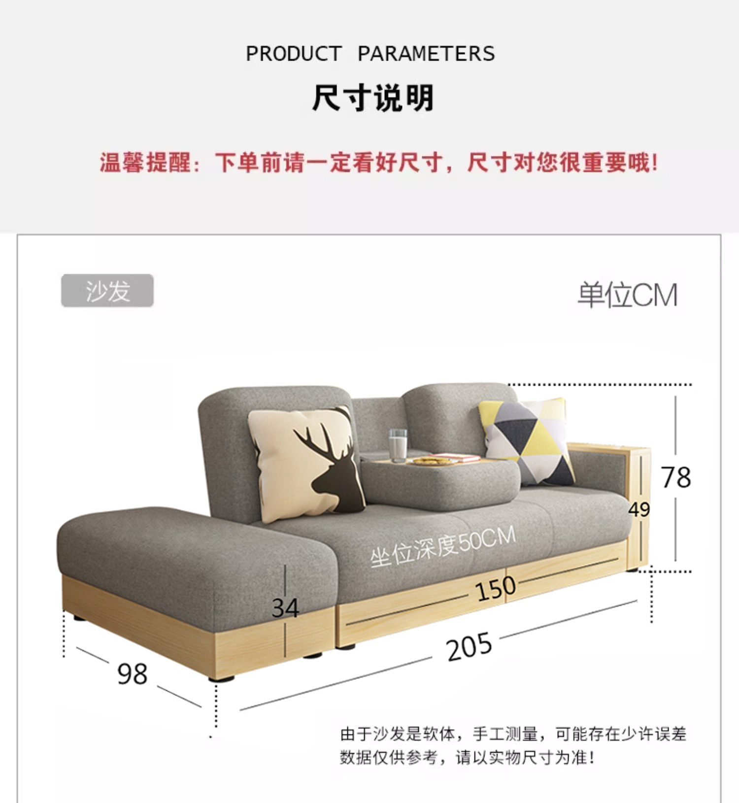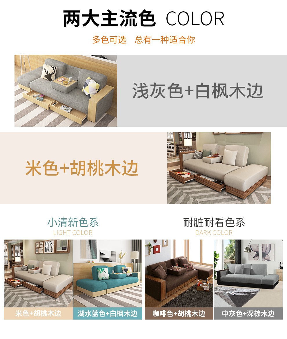 공장 직판 라텍스 패브릭 소파베드 소형 거실용 간편하고 경제적인 수납형 분리 세탁 가능 항균 방오