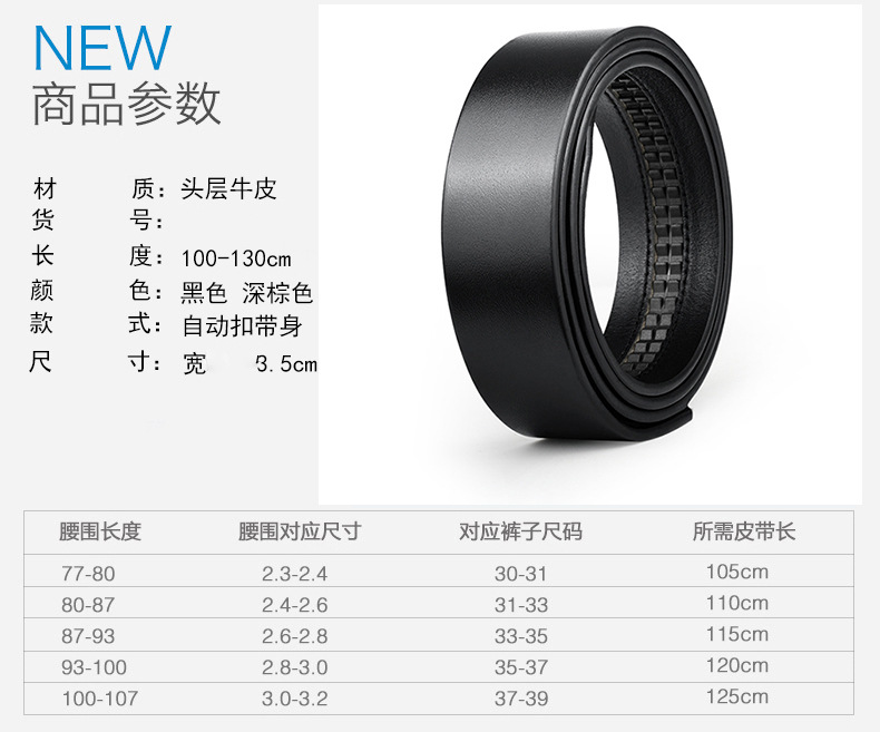 남성용 가죽 벨트, 자동 버클, 천연 소가죽, 헤드리스 벨트, 청년용 다용도 악어 무늬 벨트 스트립 35mm스토어 가기