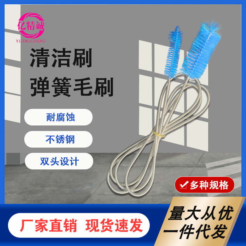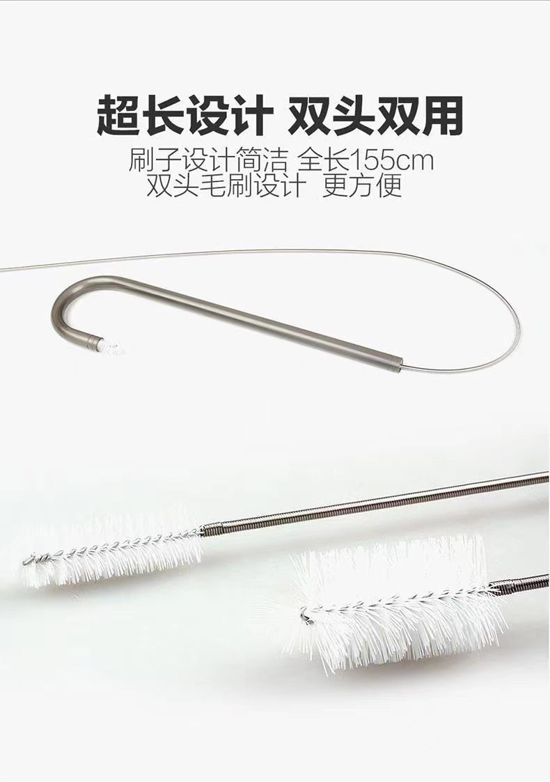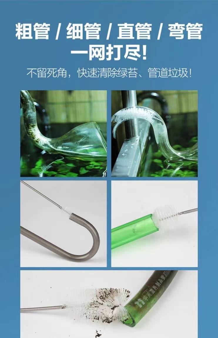 C02 수족관 유리 입구 및 출구 청소 브러시 스프링 브러시 스테인레스 스틸 더블 헤드 브러시
