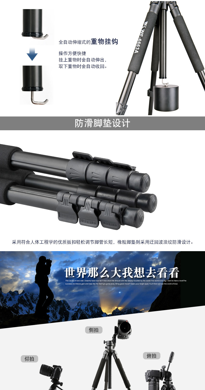 Weifeng WF663A 전문 SLR 카메라 온도계 삼각대 663A 삼각대 팬/틸트 세트 브래킷스토어 가기