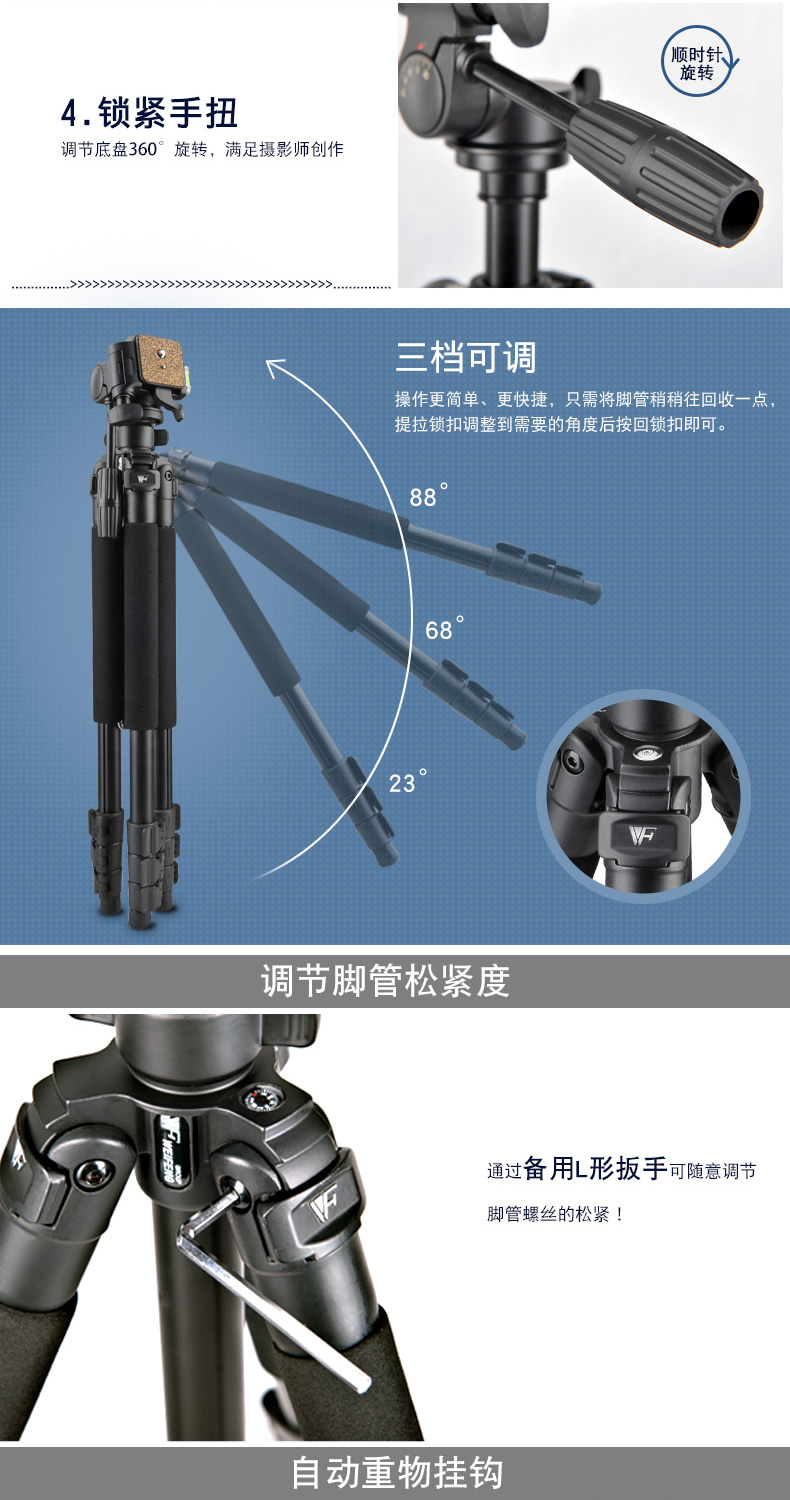 Weifeng WF663A 전문 SLR 카메라 온도계 삼각대 663A 삼각대 팬/틸트 세트 브래킷