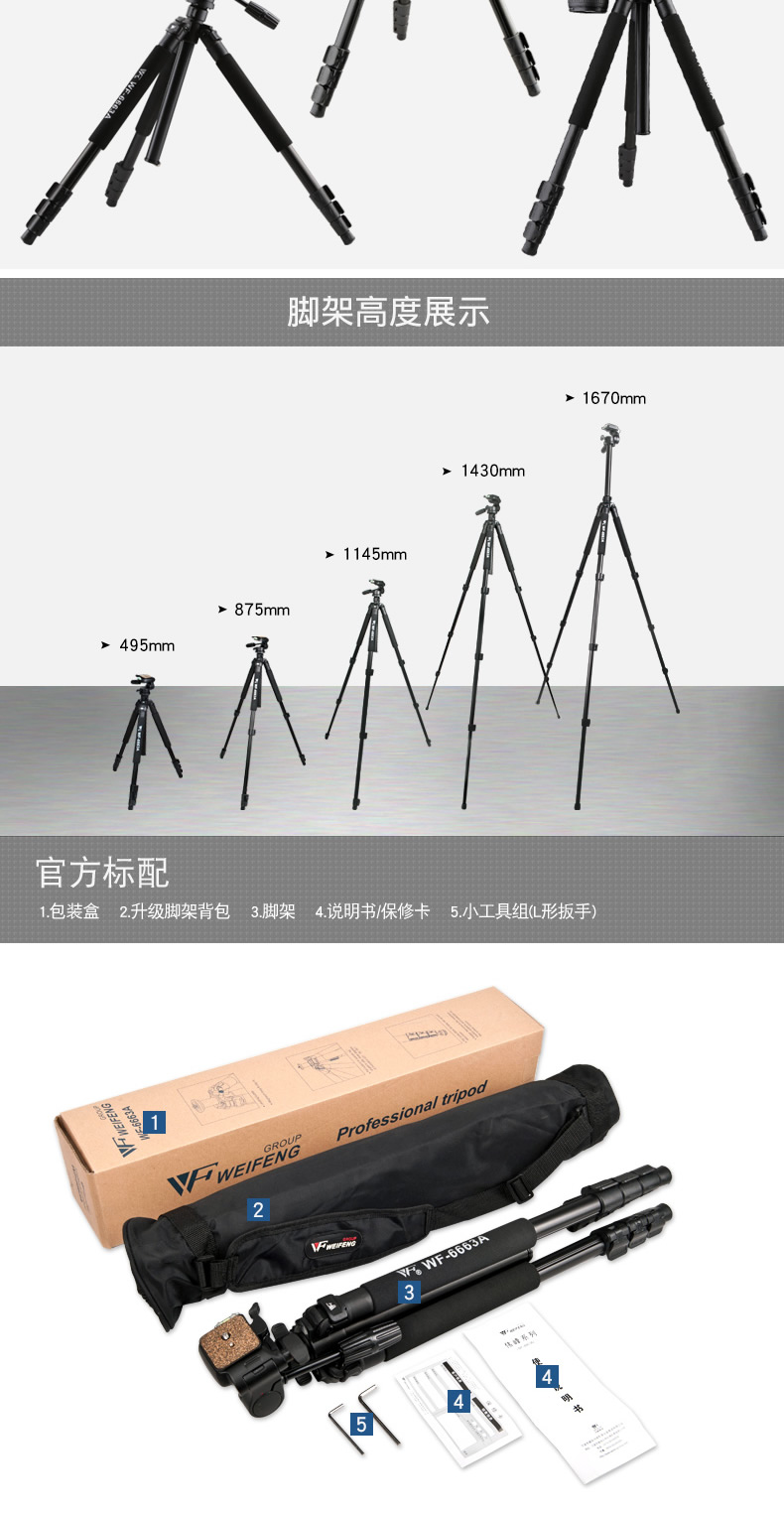 三脚架架身伟峰原装。三脚架都有口袋。标配只有口袋和三脚架,需要手机夹子和蓝牙遥控器可以另外协议加购。