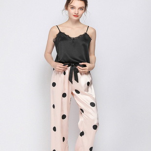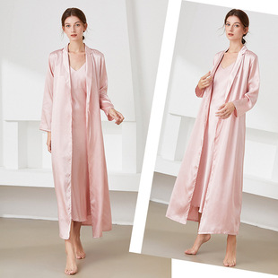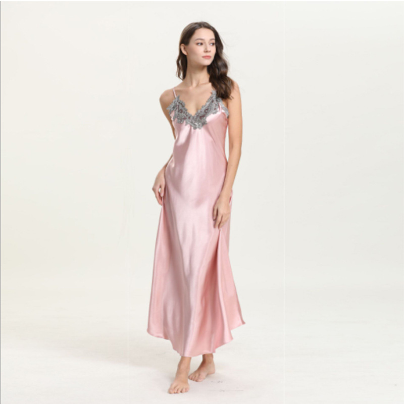 시뮬레이션 실크 잠옷 여성 레이스 섹시한 v 넥 긴 슬링 Nightdress 잠옷 홈웨어 드롭 배송