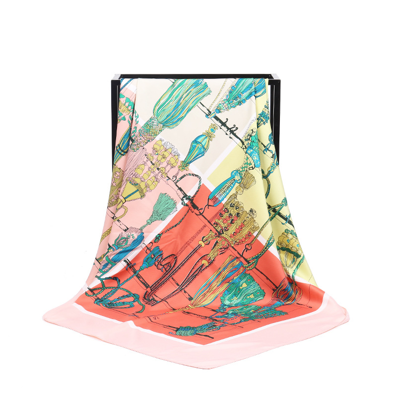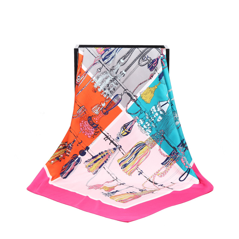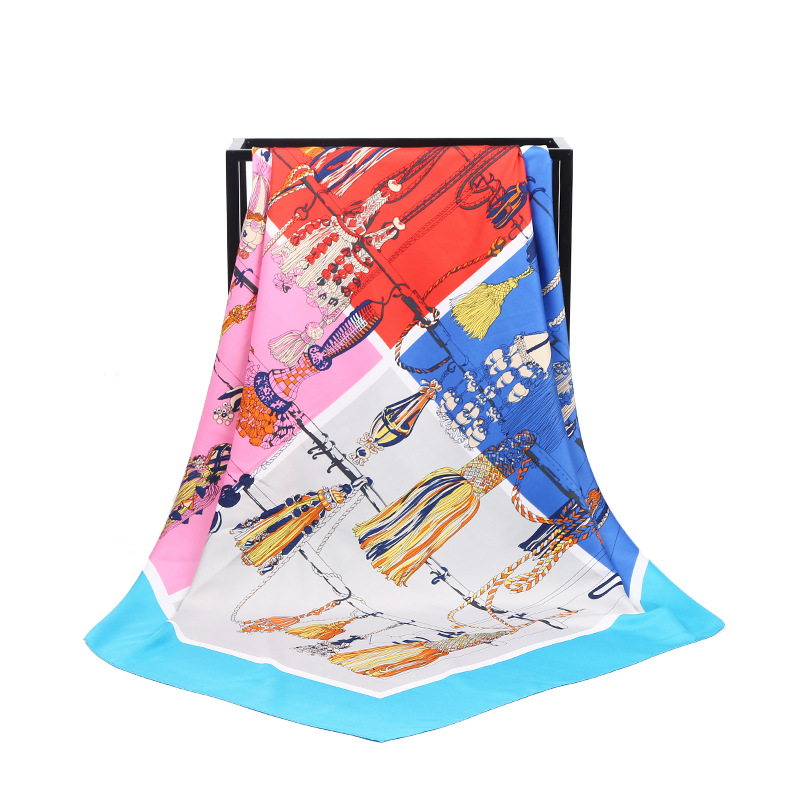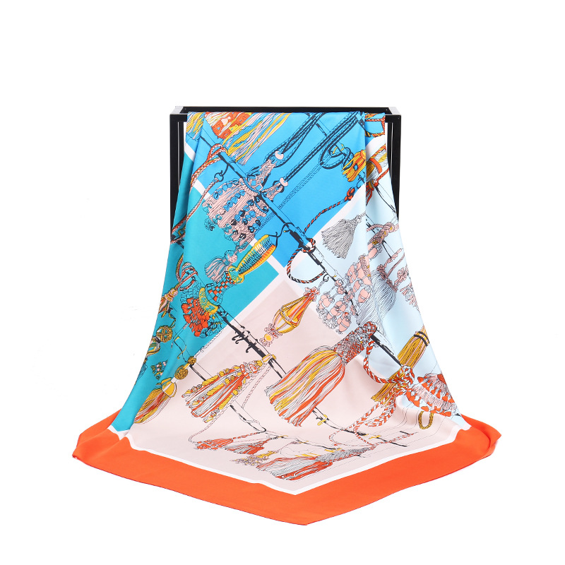 Gaohe 유럽과 미국의 패션 술 로프 트윌 프린트 스카프 100cm 큰 사각형 스카프 여성 스카프 대외 무역