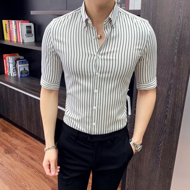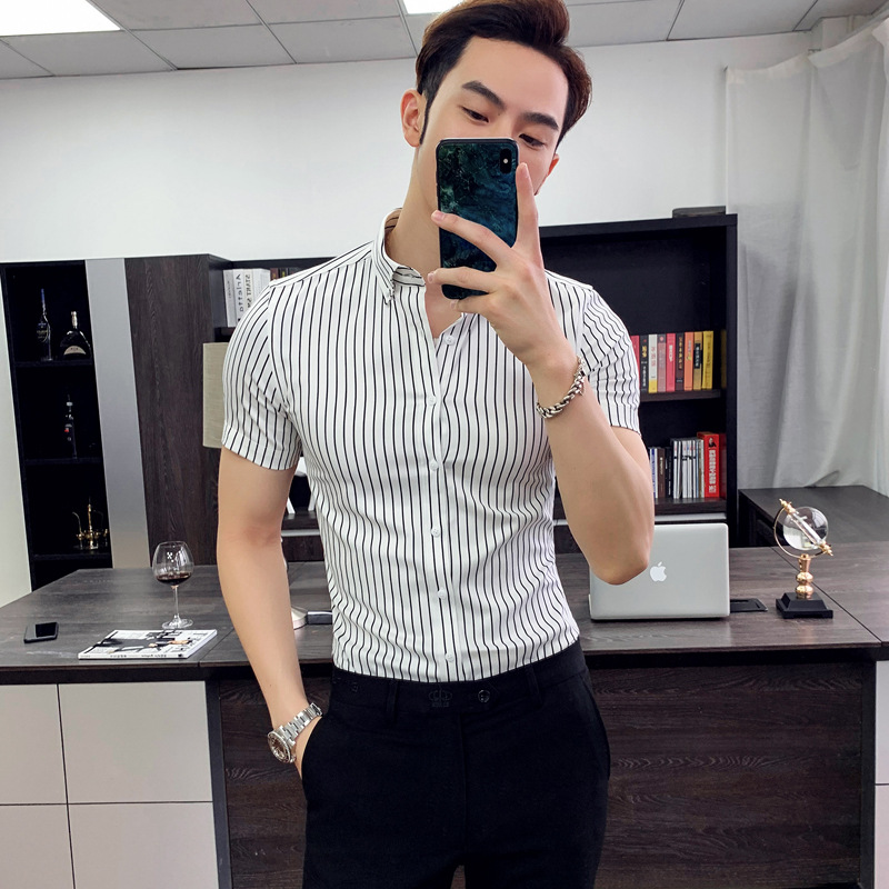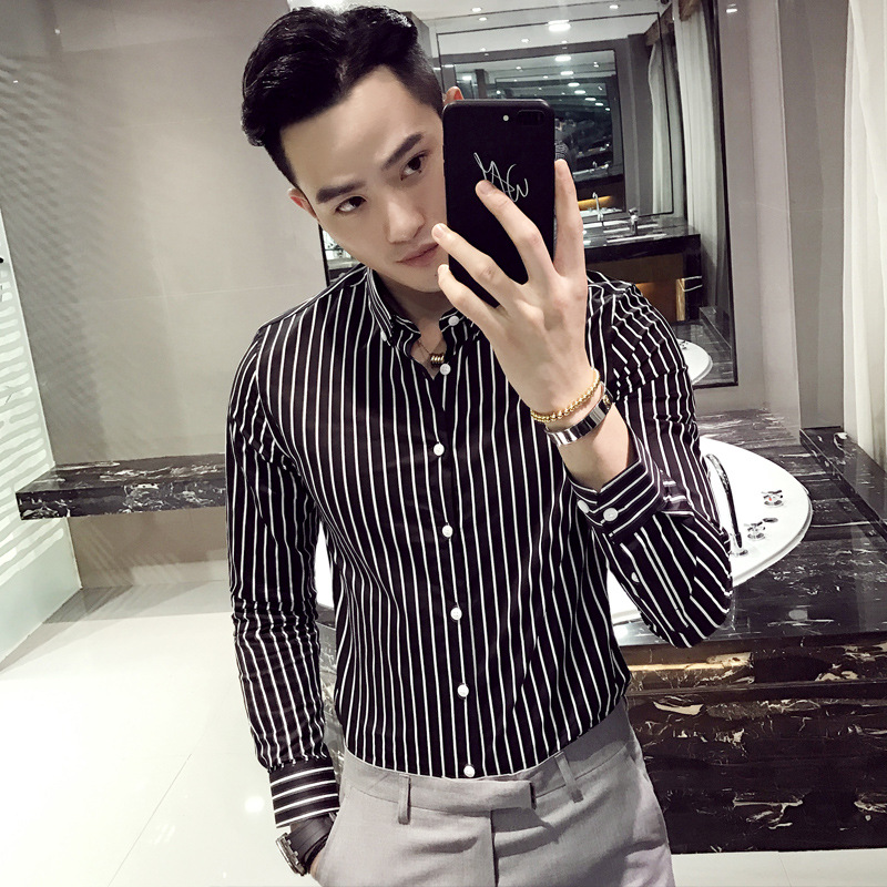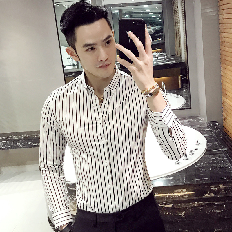 가을 긴팔 세로 스트라이프 셔츠 남성용 슬림핏 영국 셔츠 트렌디 남성 셔츠 플러스 사이즈 트렌디 CS92