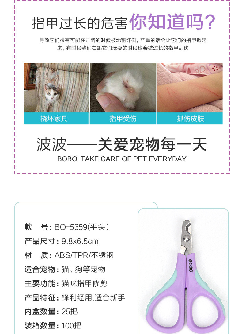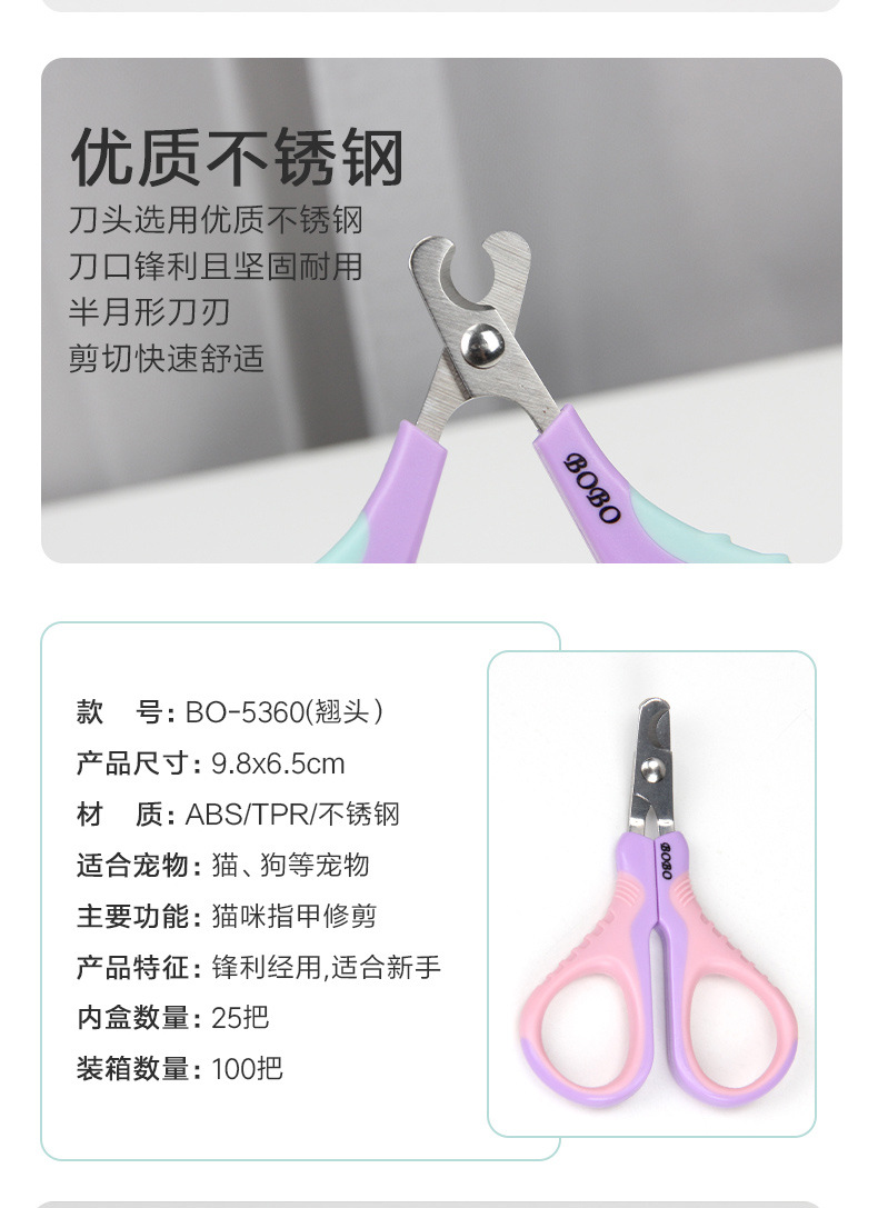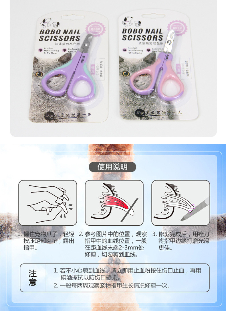 보보 애완 동물 고양이 손톱깎이 고양이 손톱깎이로 새끼 고양이 더블 컬러 플랫 헤드 워프 손톱깎이 도매