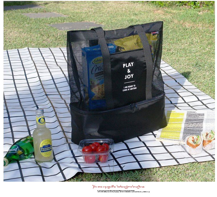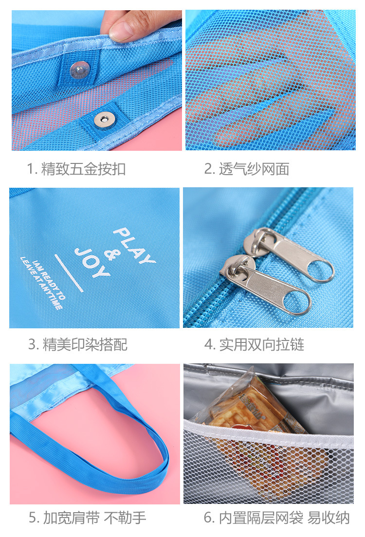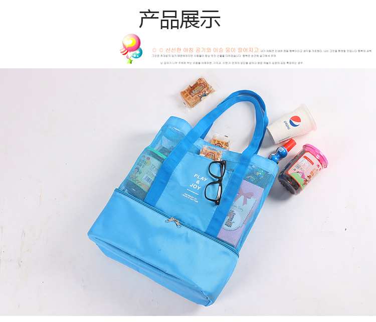 인쇄 가능한 로고 여행 피크닉 가방 도시락 가방 휴대용 단열 가방 대형 수영 통기성 건조 및 습식 분리 비치 가방스토어 가기