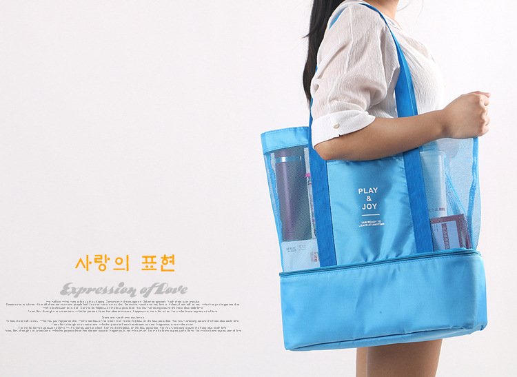 인쇄 가능한 로고 여행 피크닉 가방 도시락 가방 휴대용 단열 가방 대형 수영 통기성 건조 및 습식 분리 비치 가방