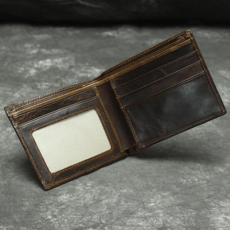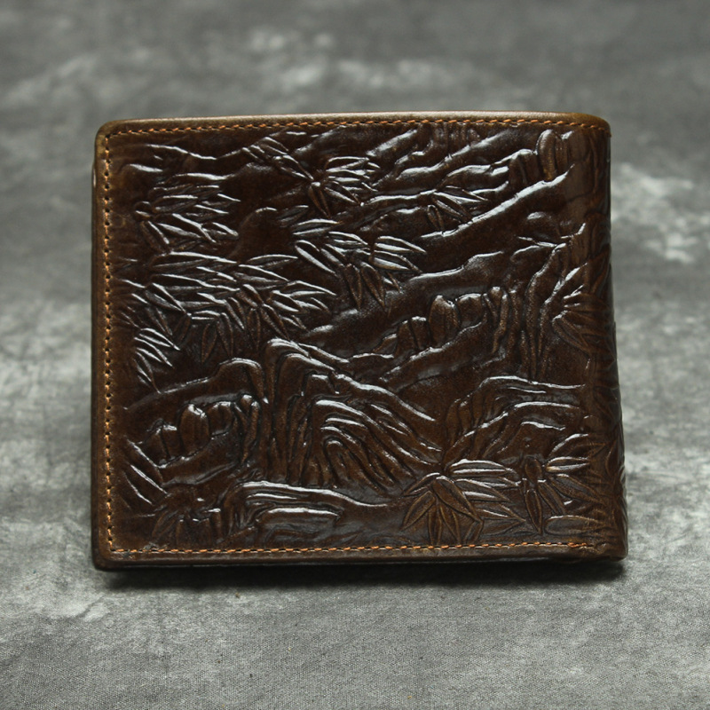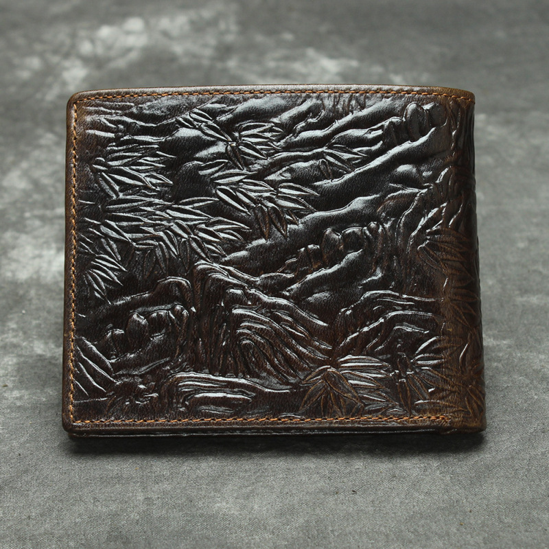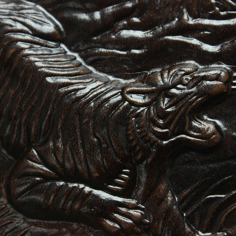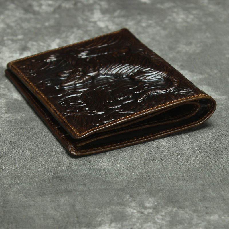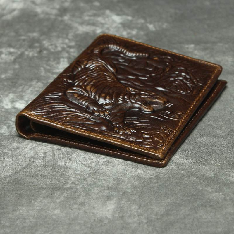 남성과 여성을위한 간단한 오일 왁스 가죽 지갑 정품 가죽 입체 호랑이 패턴 지갑 2-접이식 상단 레이어 소가죽 실버 가방 수평 및 수직스토어 가기