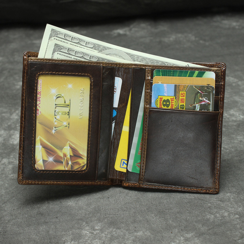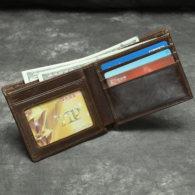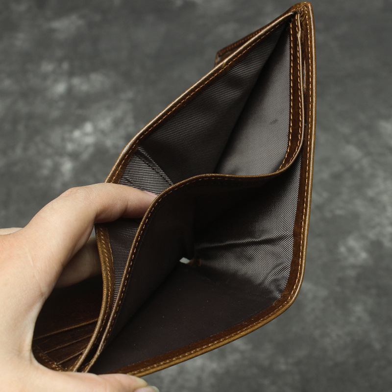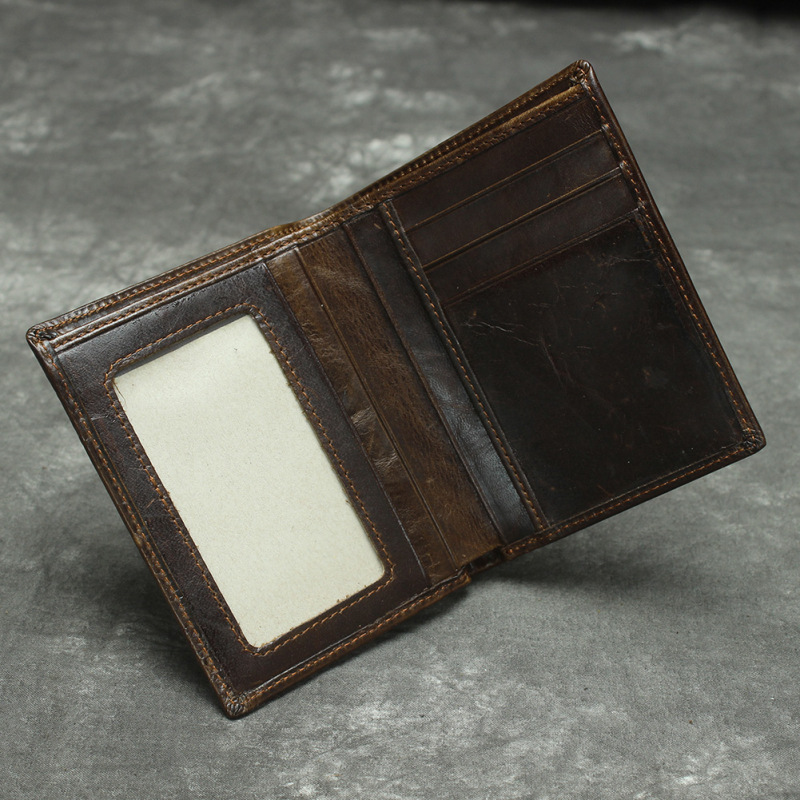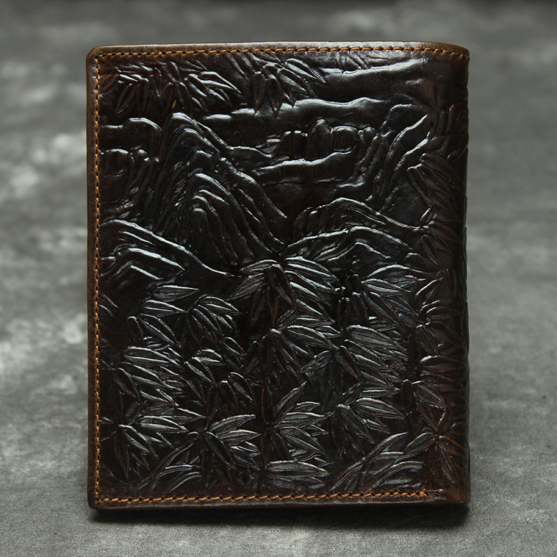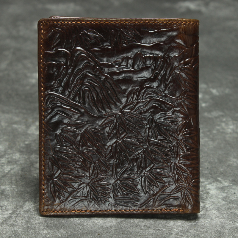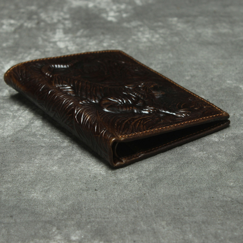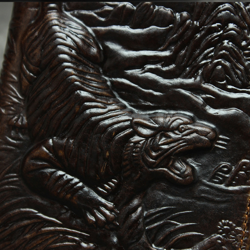 남성과 여성을위한 간단한 오일 왁스 가죽 지갑 정품 가죽 입체 호랑이 패턴 지갑 2-접이식 상단 레이어 소가죽 실버 가방 수평 및 수직