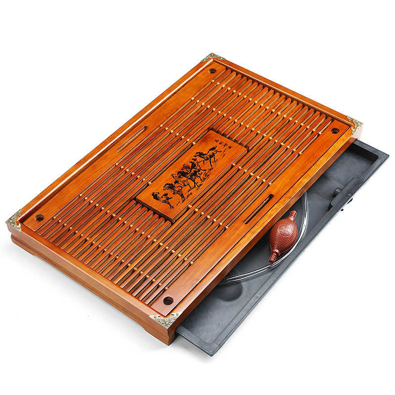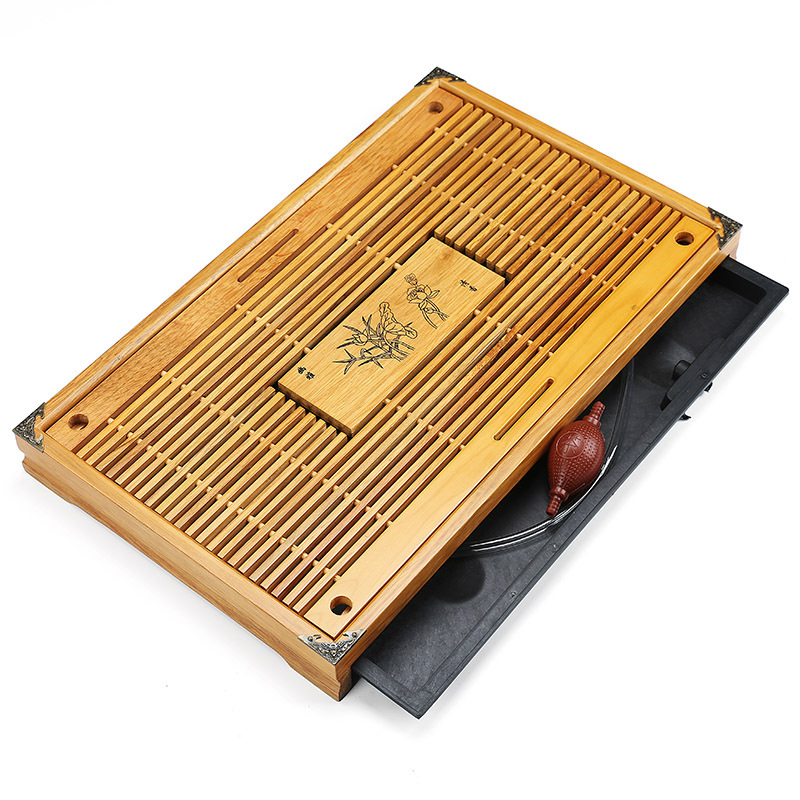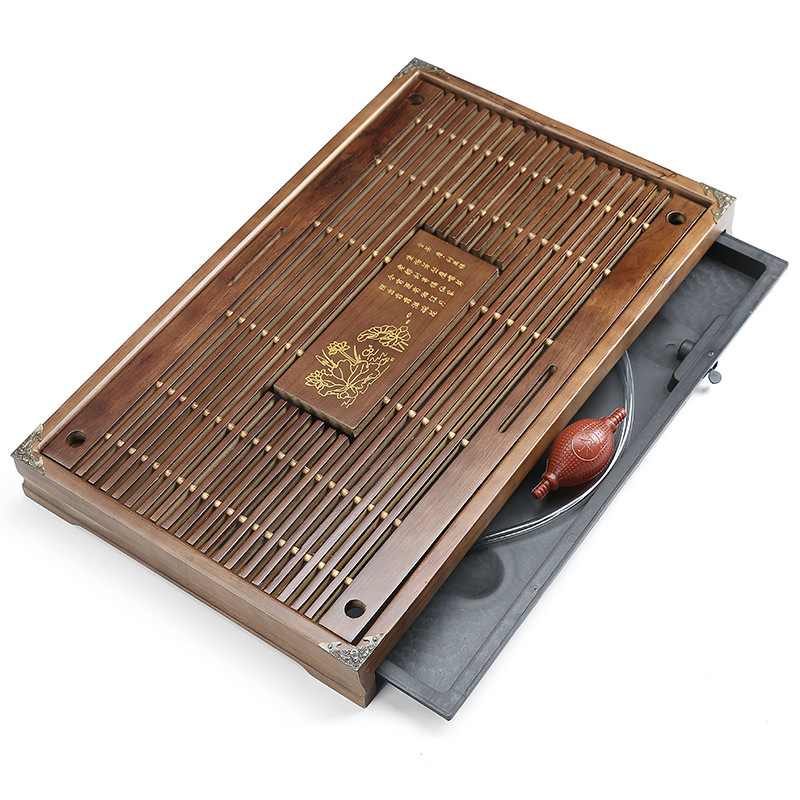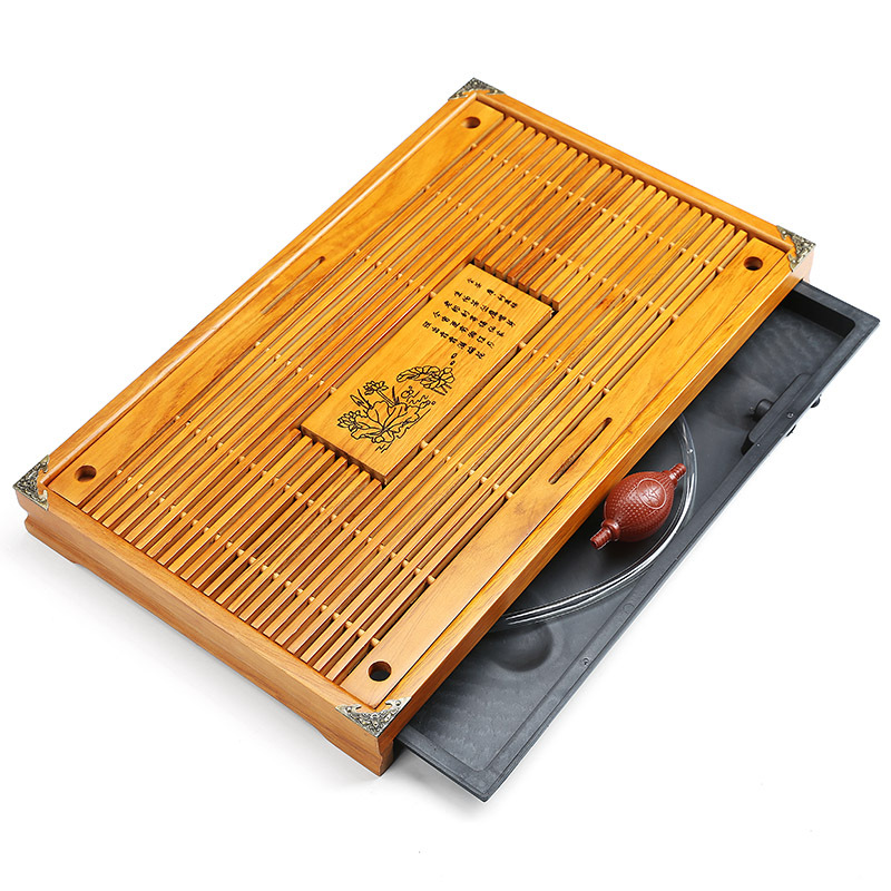 목재 차대, 공푸 차 트레이, 직사각형 서랍형 차 도구 트레이, 원목 코우목 차 트레이, 중국풍 신중국 스타일스토어 가기